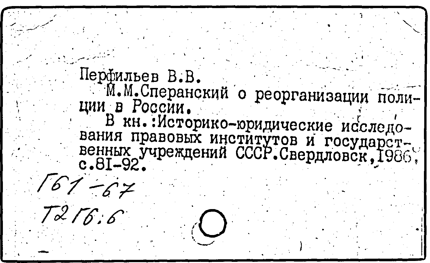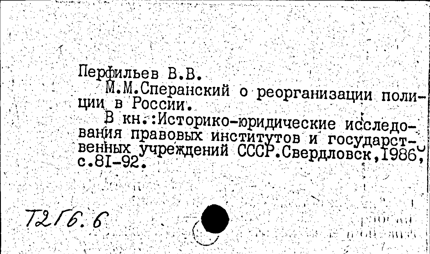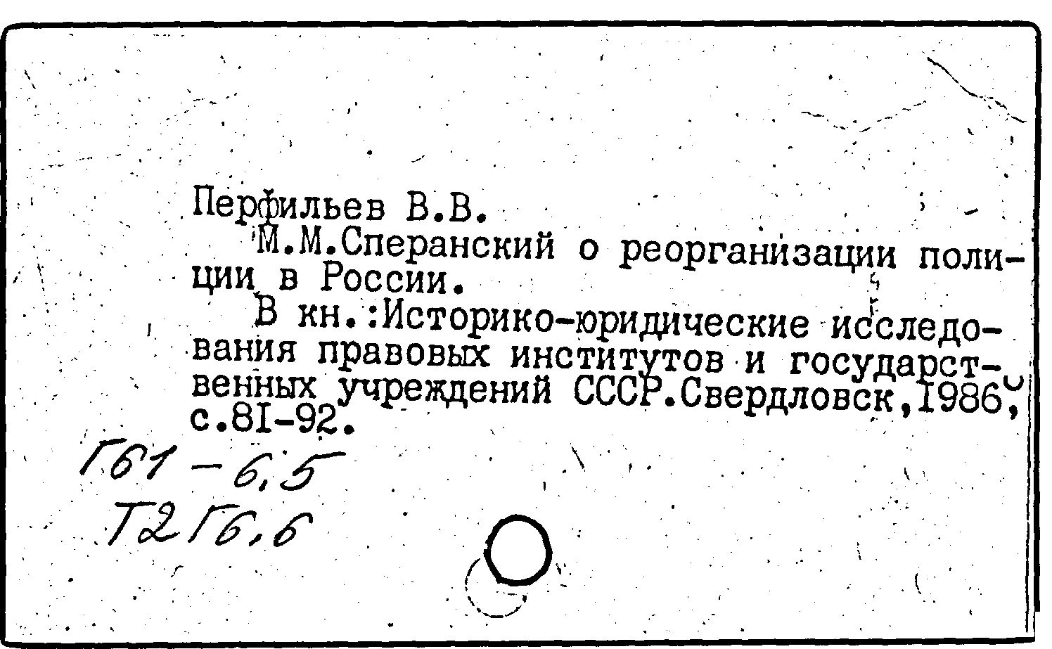Книга (аналит. описание): М. М. Сперанский о реорганизации полиции в России