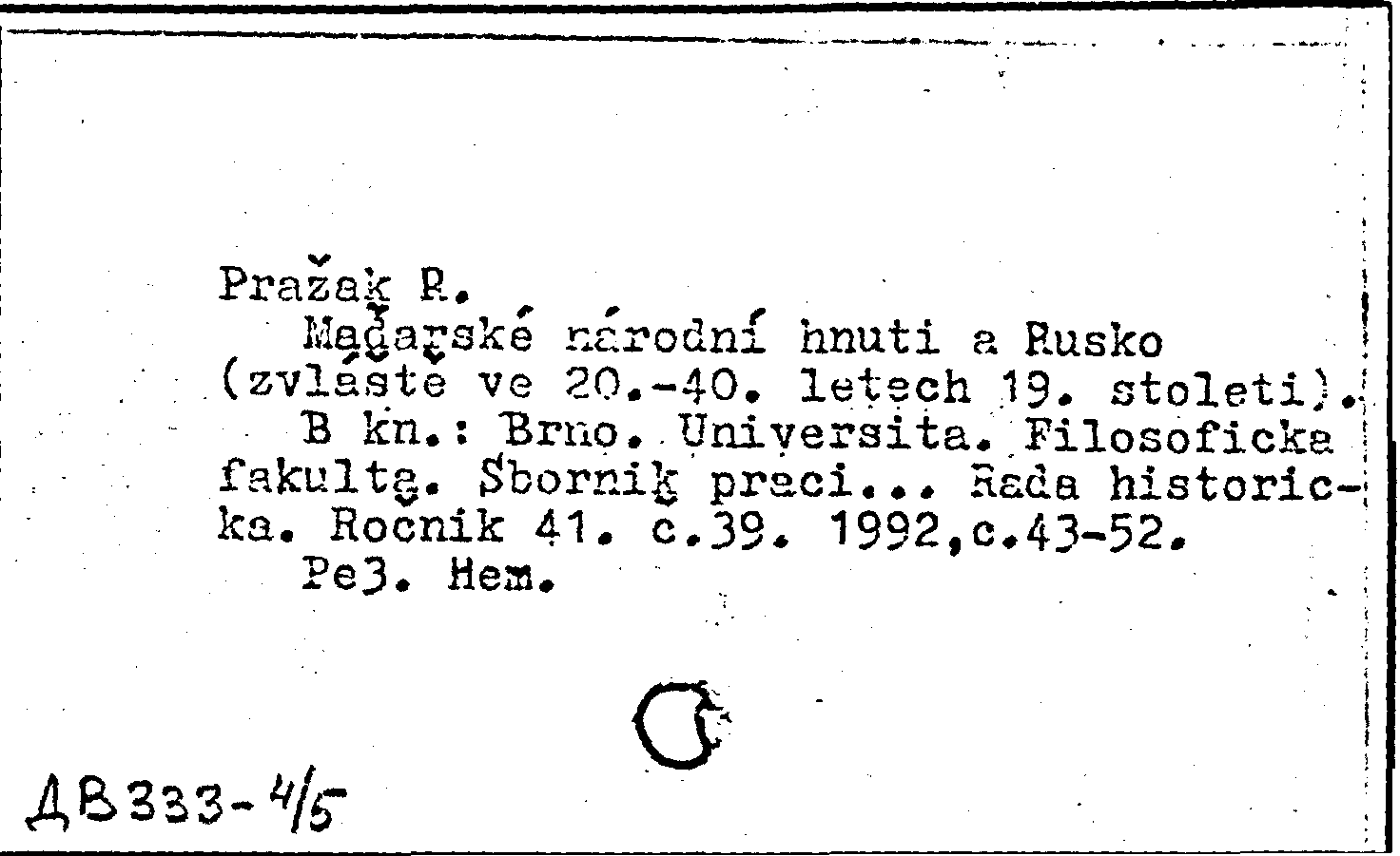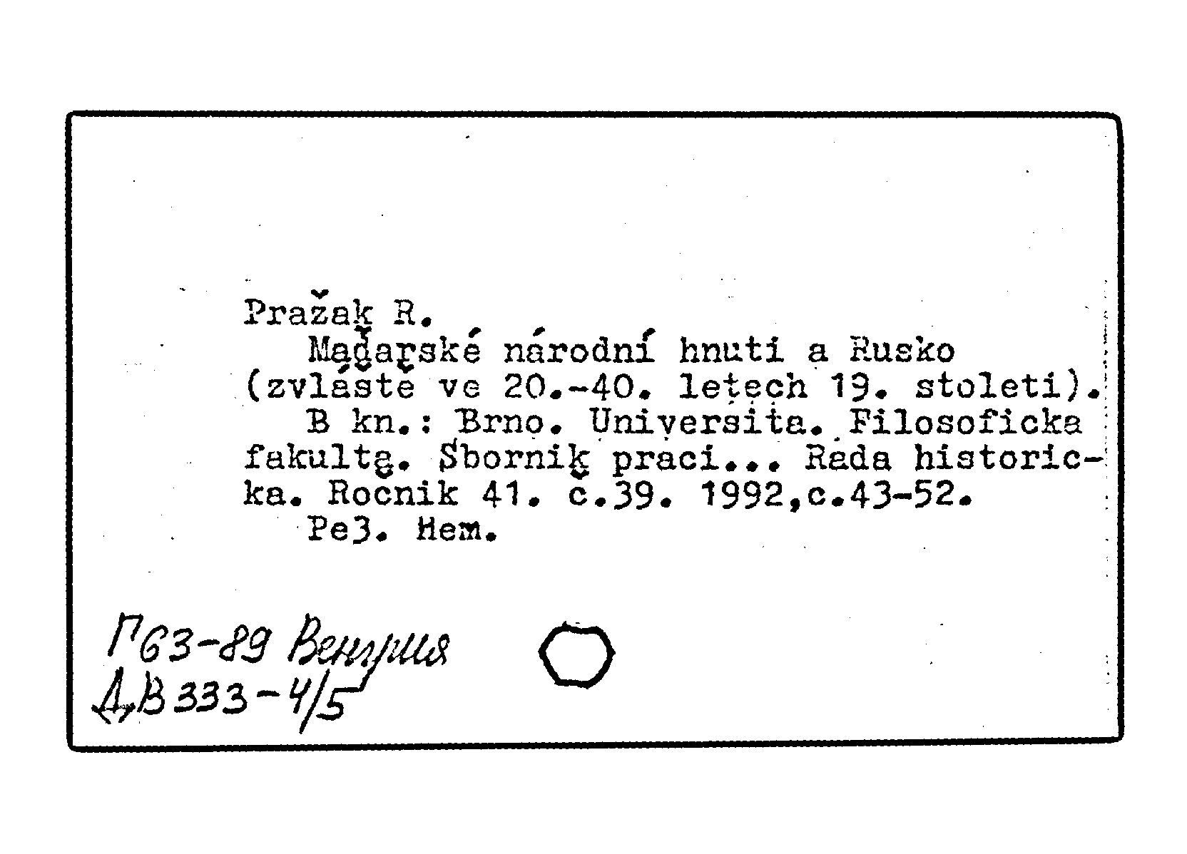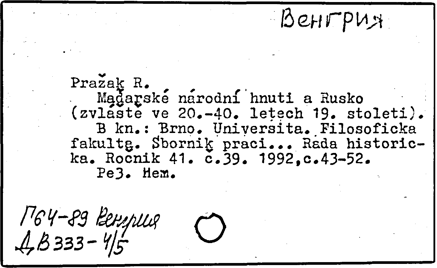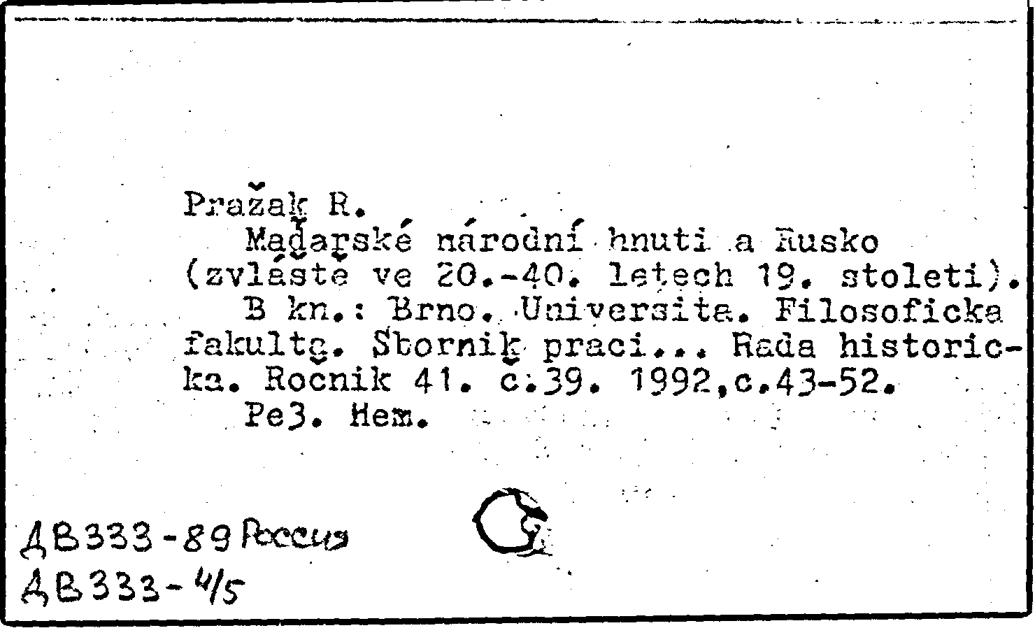 Книга (аналит. описание): Madarske narodni hnuti a Rusko (zvlaste ve 20.-40. letech 19. stoleti)