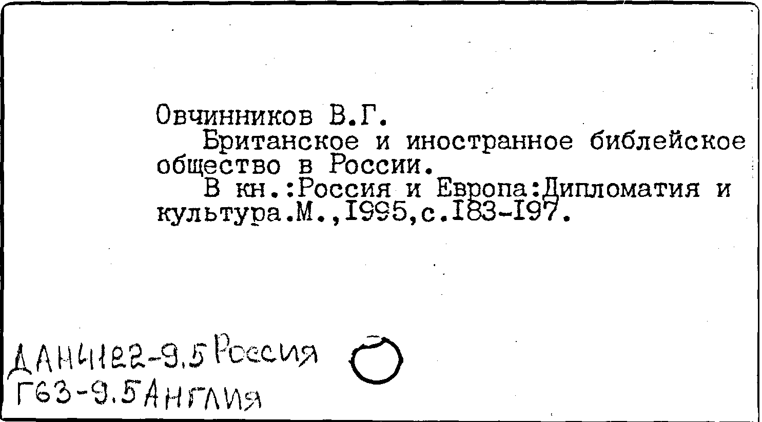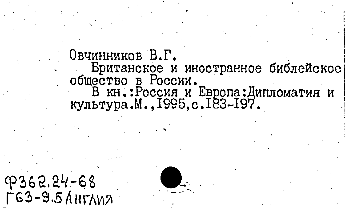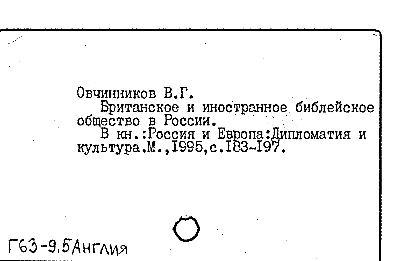 Книга (аналит. описание): Британское и иностранное библейское общество в России