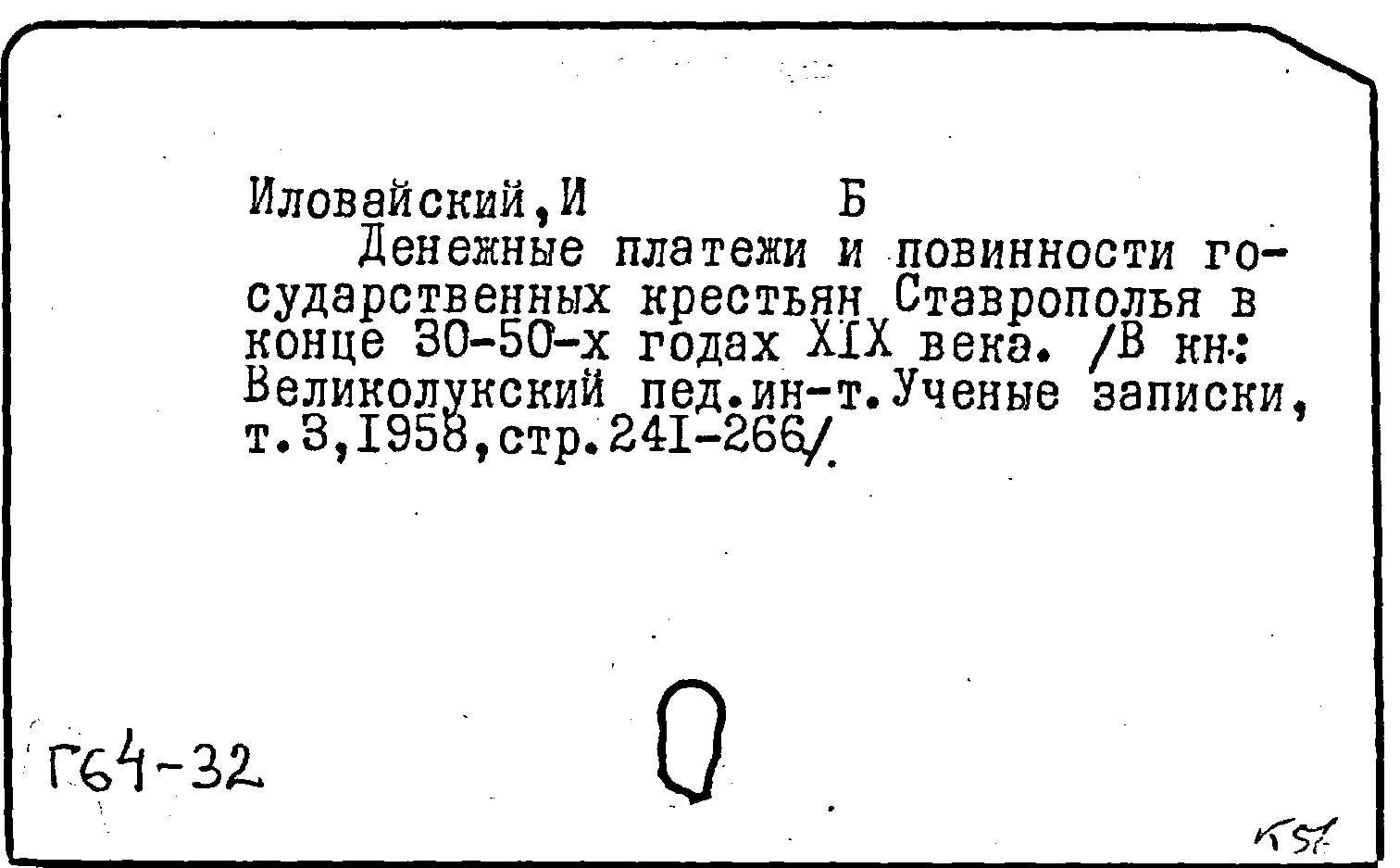 Книга (аналит. описание): Денежные платежи и повинности государственных крестьян Ставрополья в конце 30-50-х годах XIX века