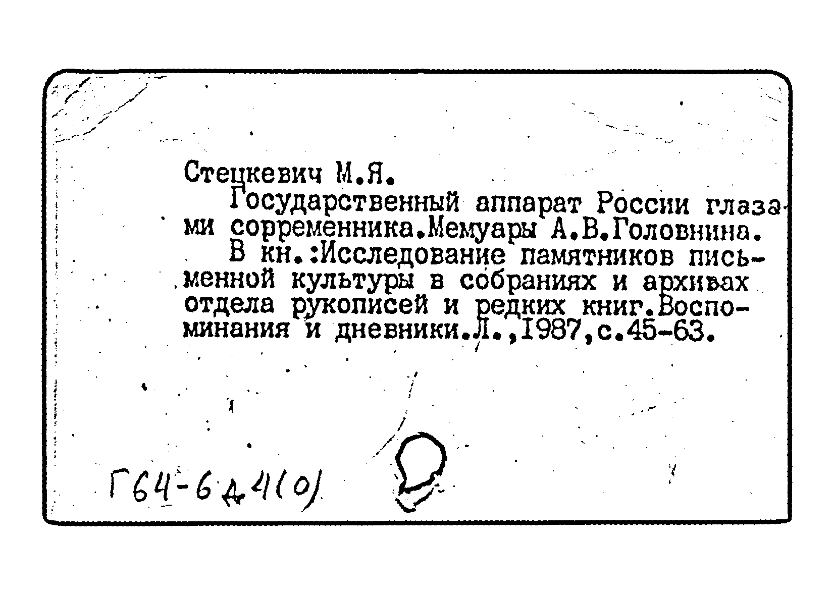 Книга (аналит. описание): Государственный аппарат России глазами современника