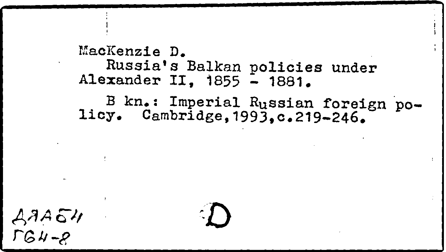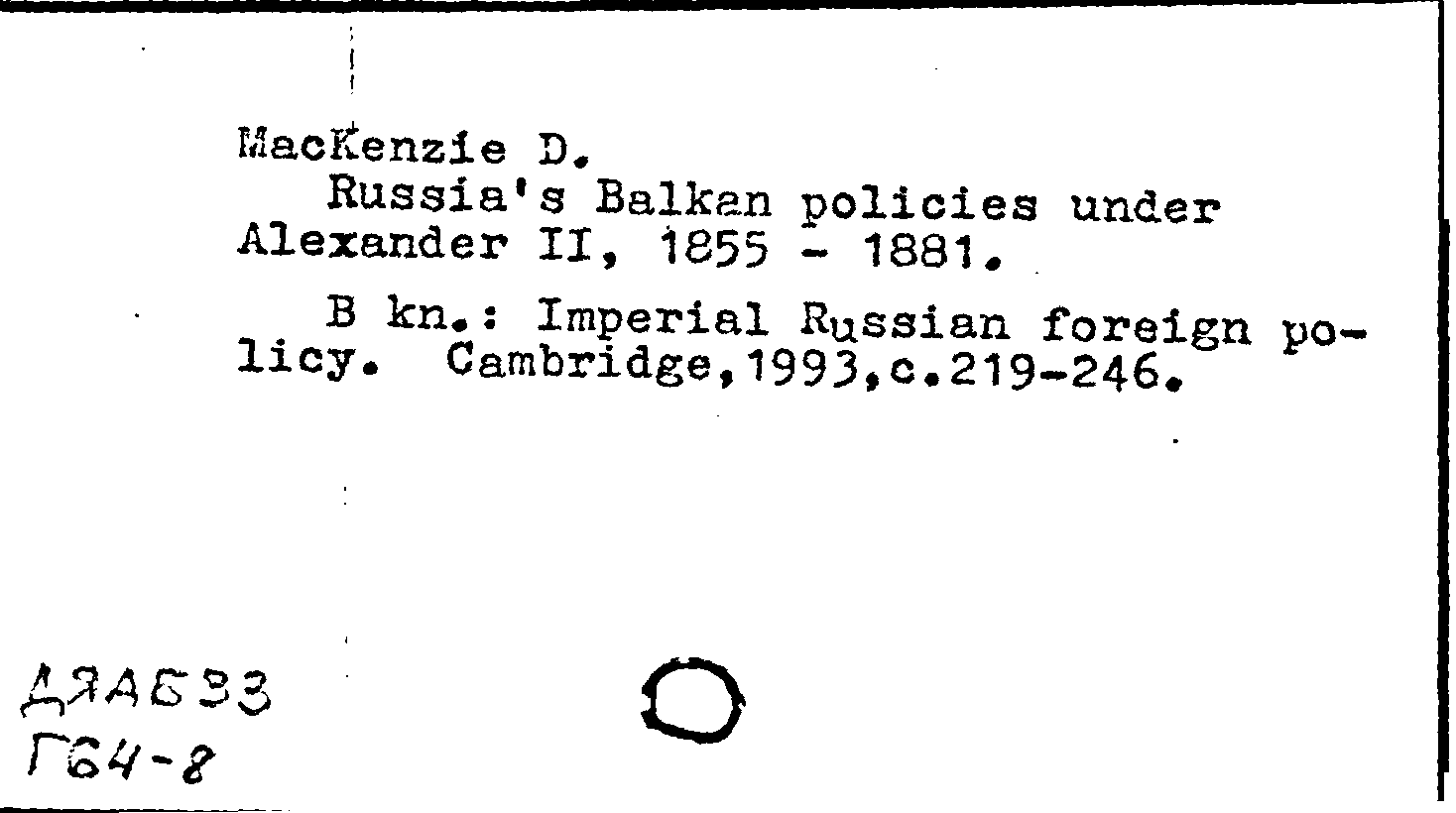 Книга (аналит. описание): Russia's Balkan policies under Alexander II, 1855-1881