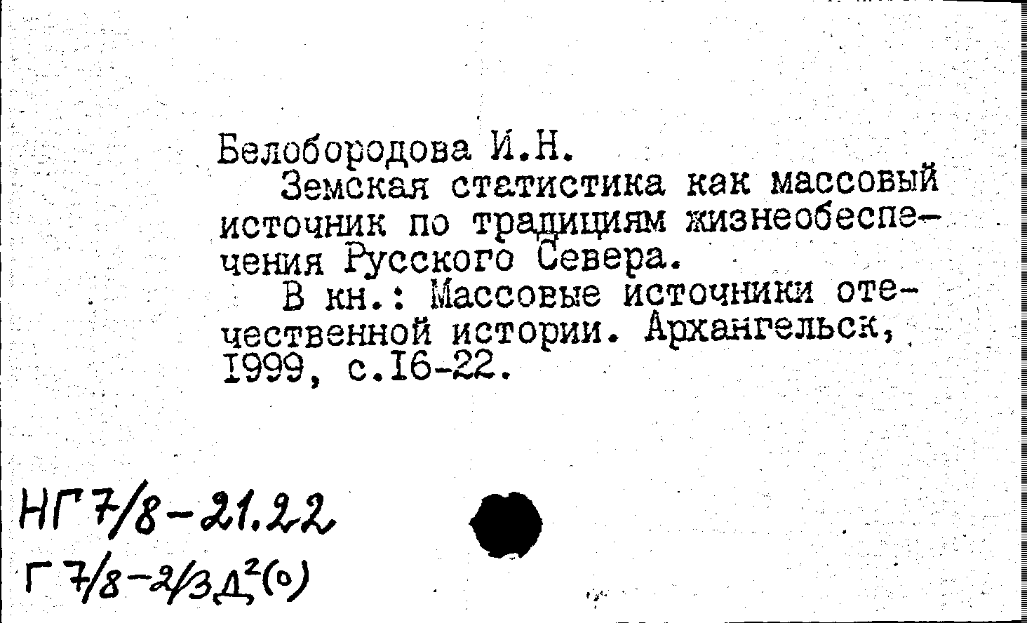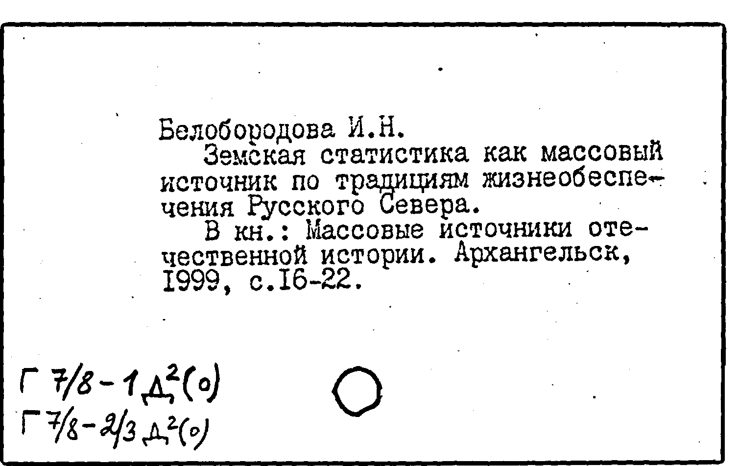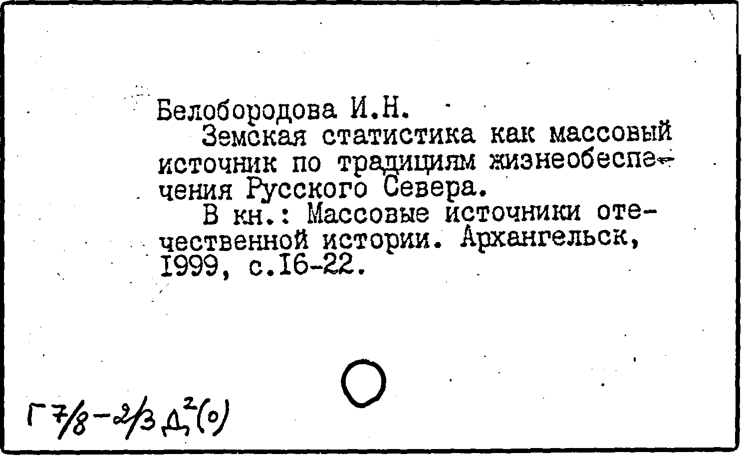 Земская статистика как массовый источник по традициям жизнеобеспечения Русского Севера