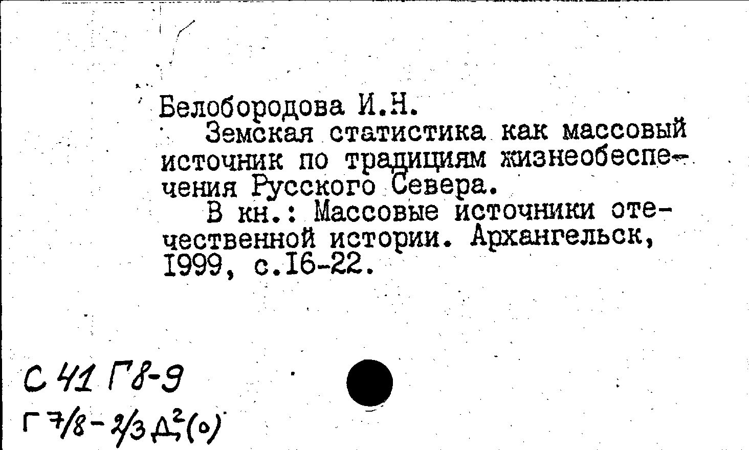 Книга (аналит. описание): Земская статистика как массовый источник по традициям жизнеобеспечения Русского Севера