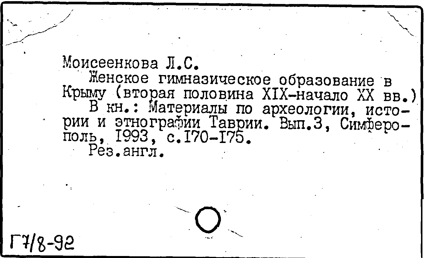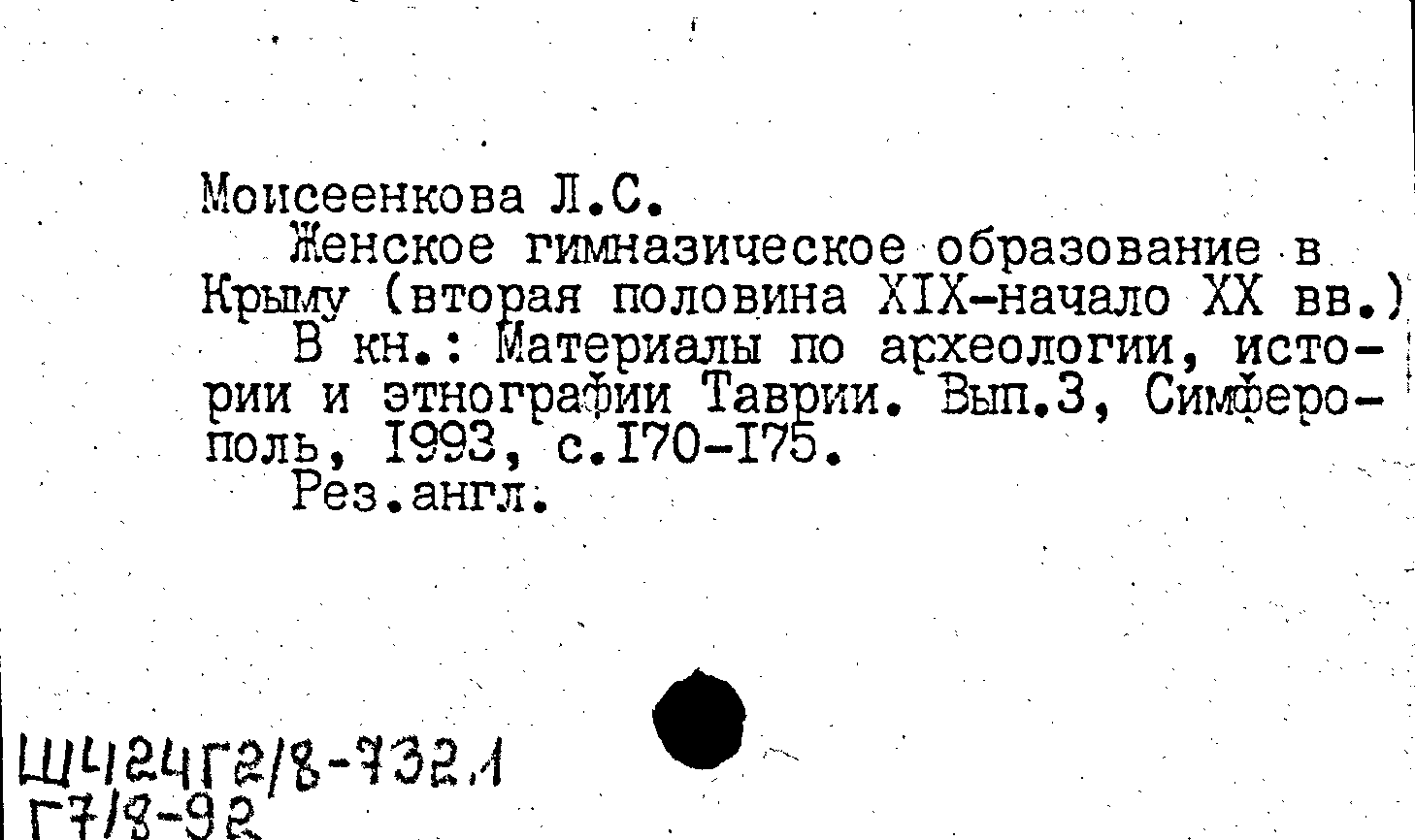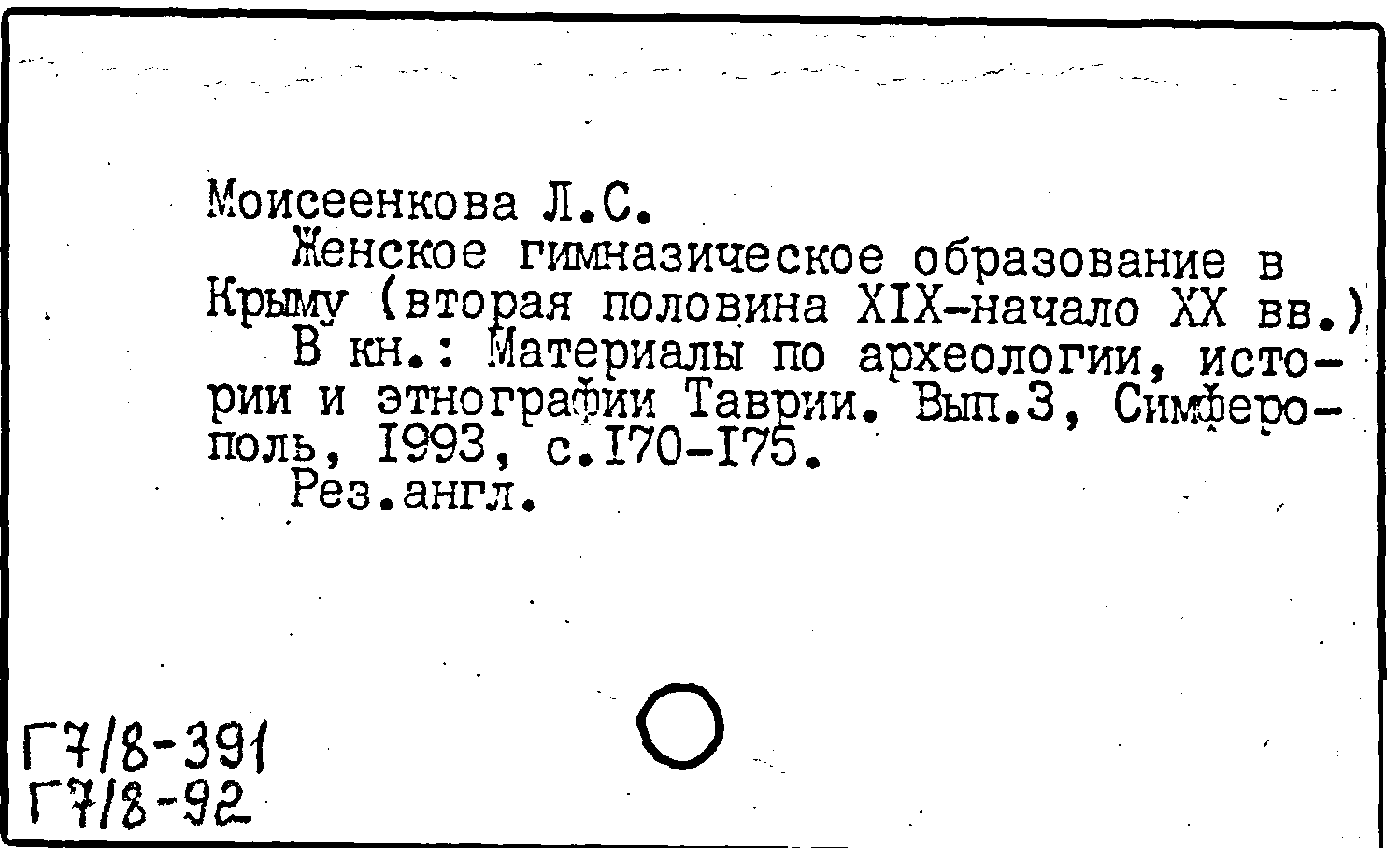Женское гимназическое образование в Крыму (вторая половина XIX - начало XX вв.)