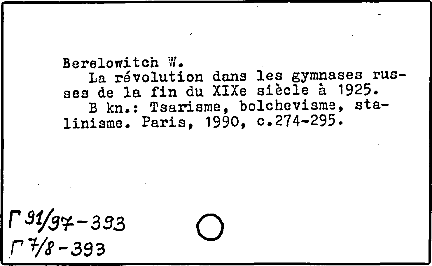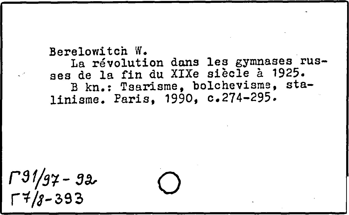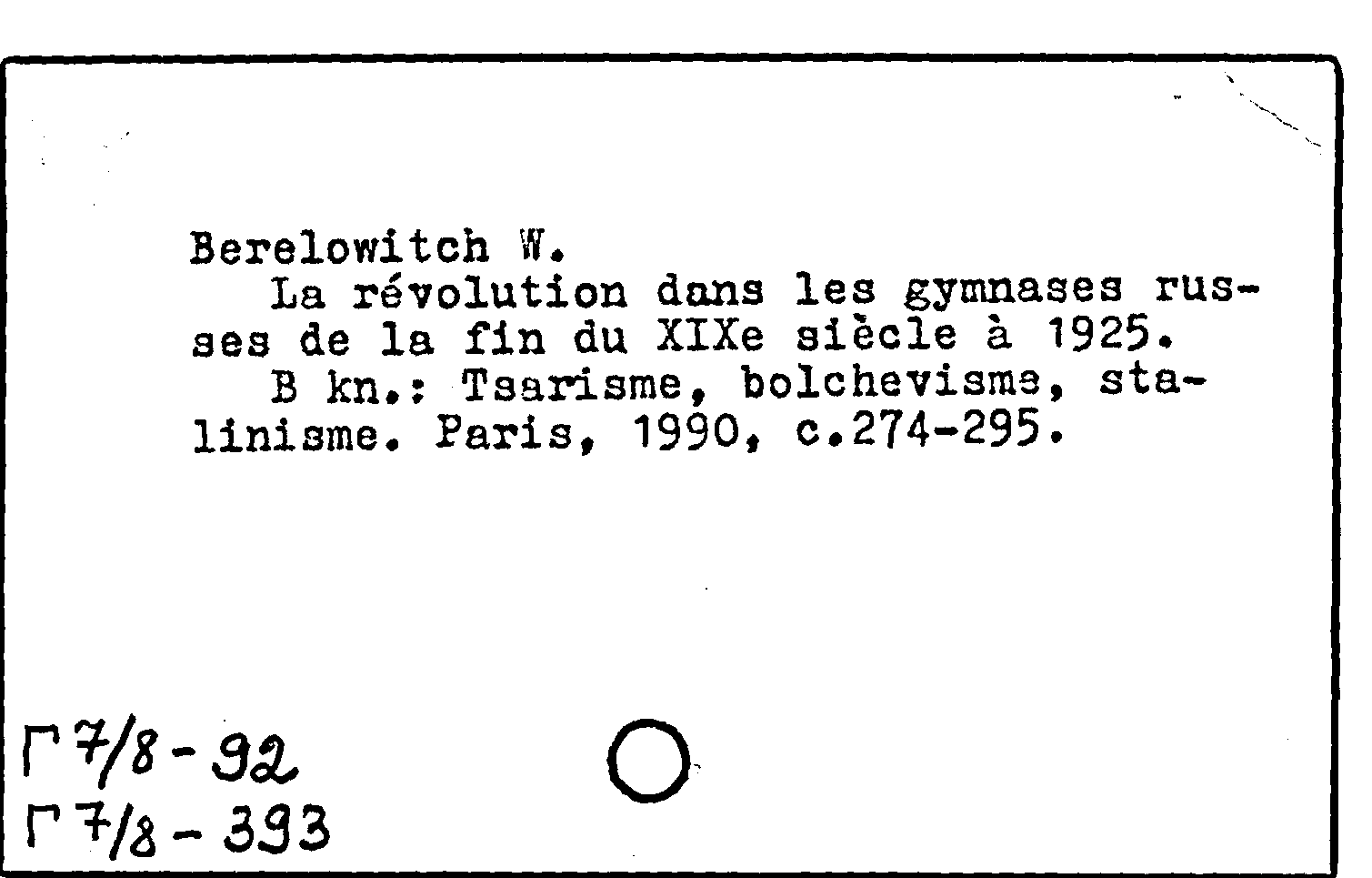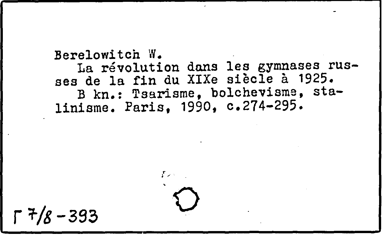 Книга (аналит. описание): La revolution dans les gymnases russes de la fin du XIXe siecle a 1925