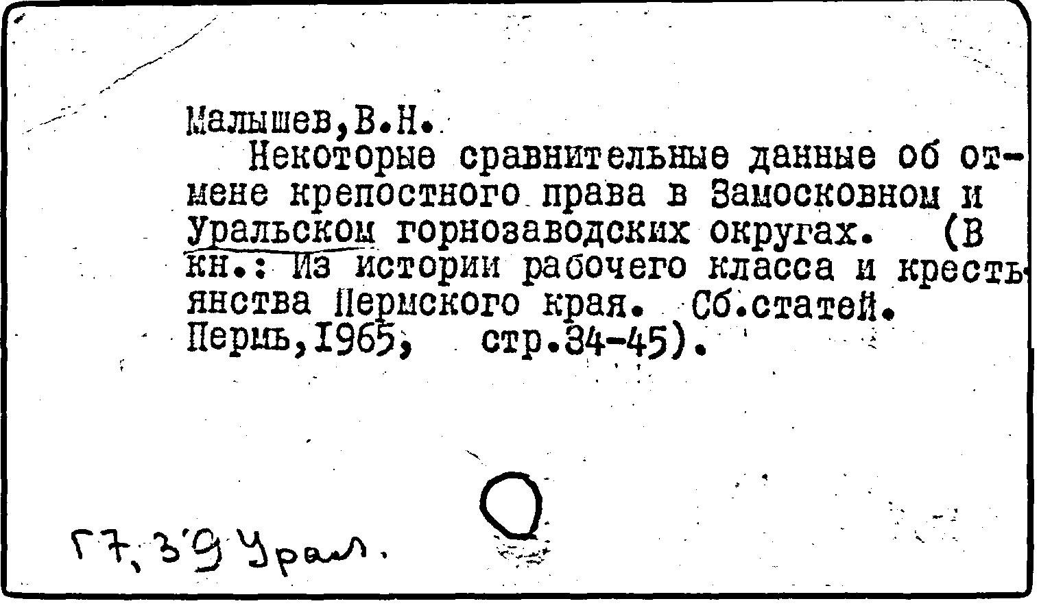 Россия, 1861 г. - сер. 90-х годов 19 в. \ Реформы 60-х - 70-х гг. \ Отмена крепостного права ("Крестьянская реформа 1861 г.") \ Отмена крепостного права в отдельных местностях \ Урал (12)