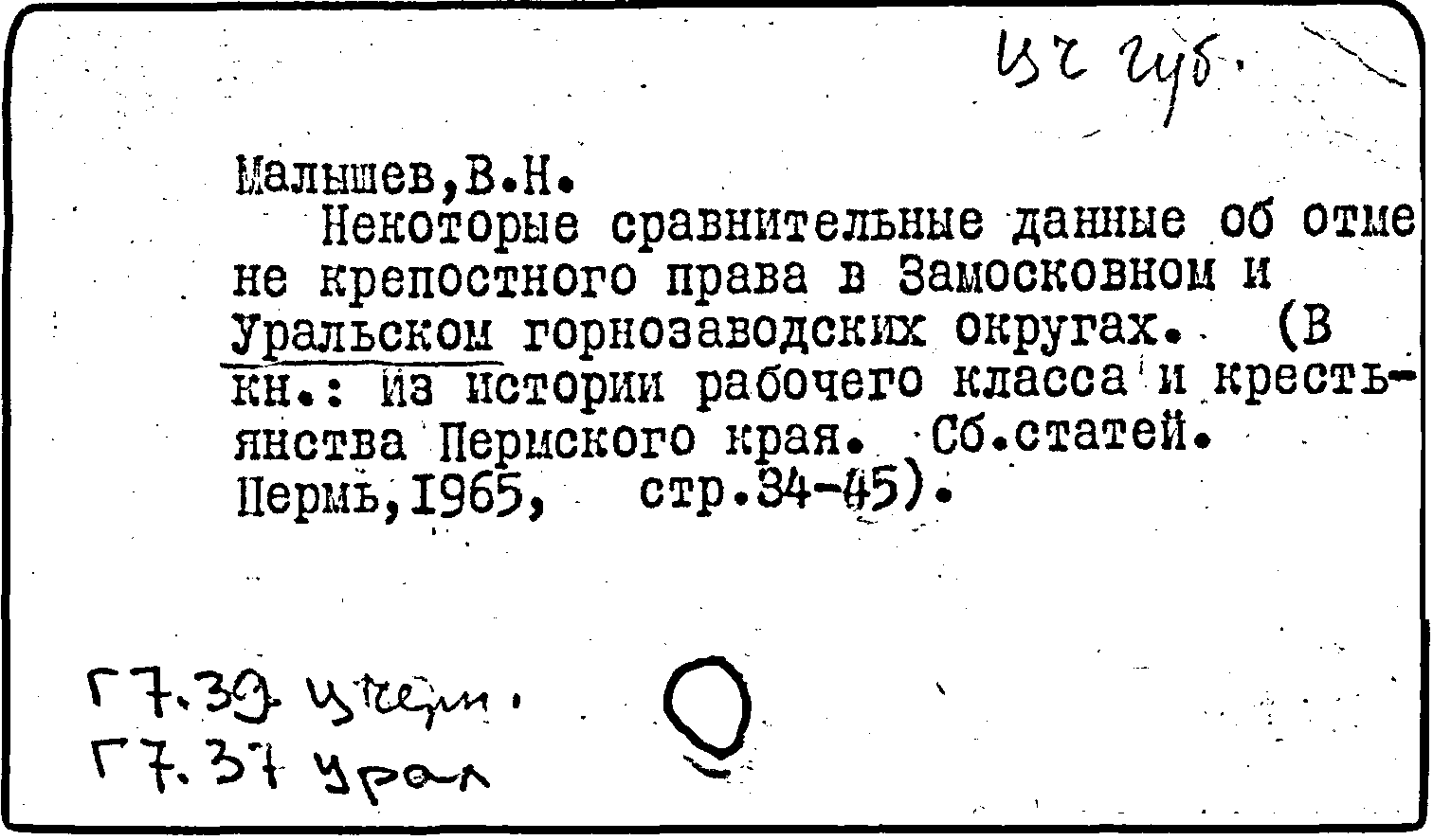 Некоторые сравнительные данные об отмене крепостного права в Замосковном и Уральском горнозаводских округах