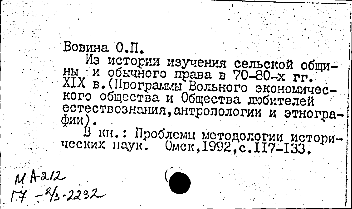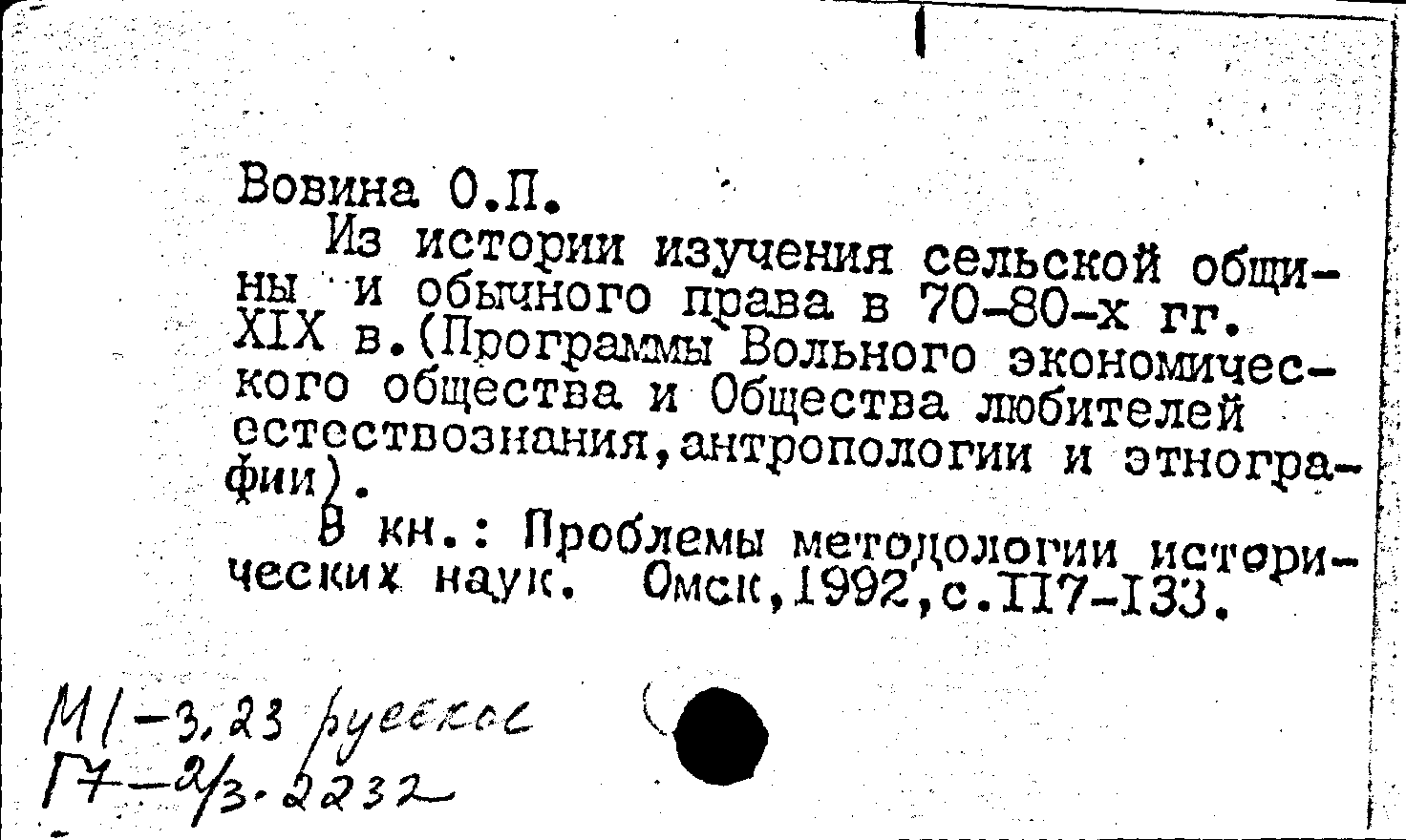Из истории изучения сельской общины и обычного права в 70-80-х гг. XIX в.