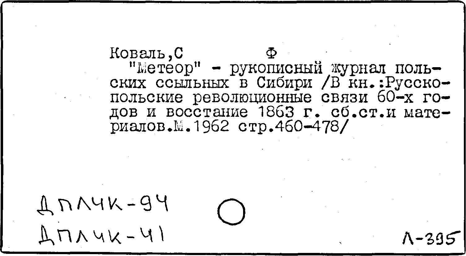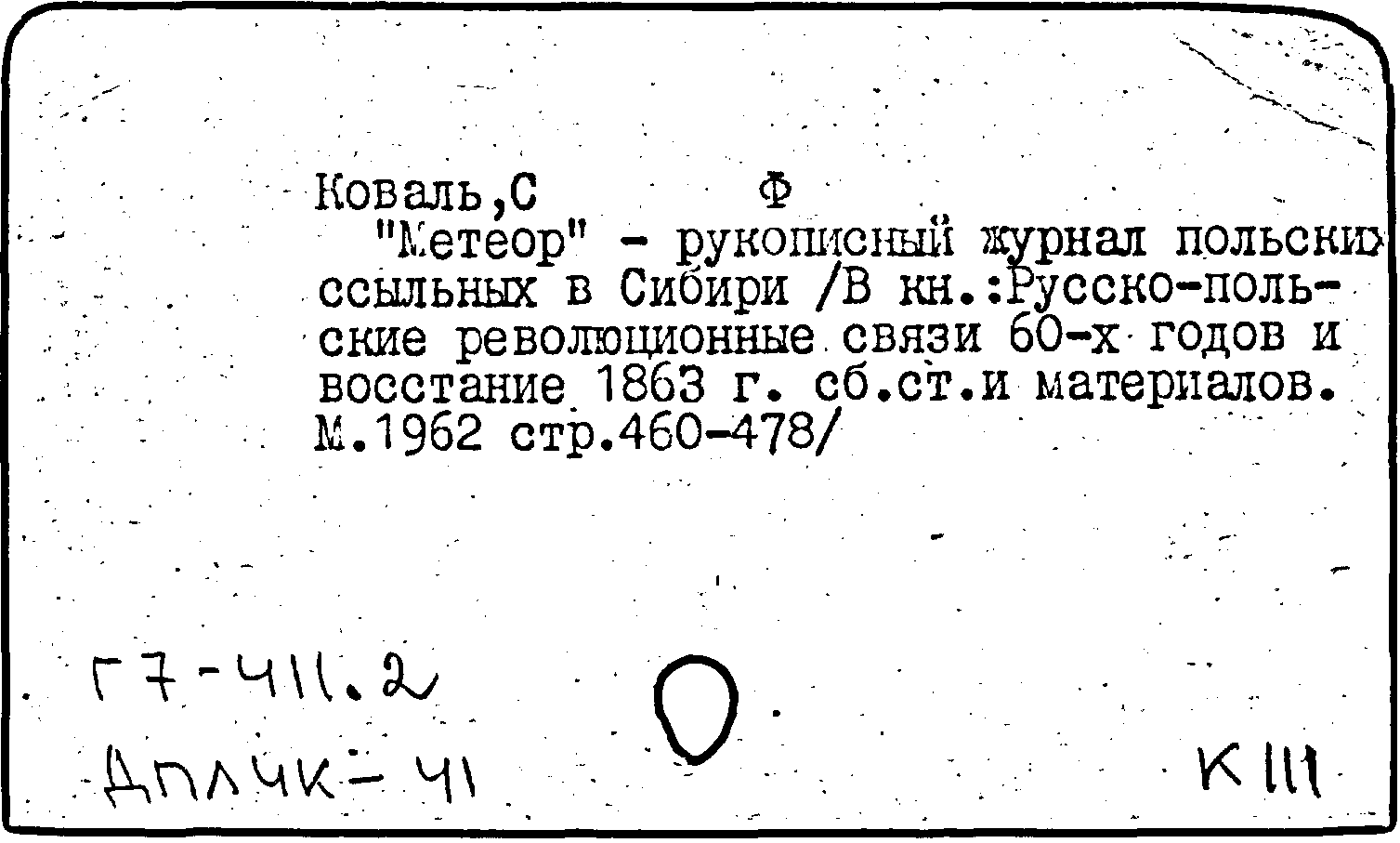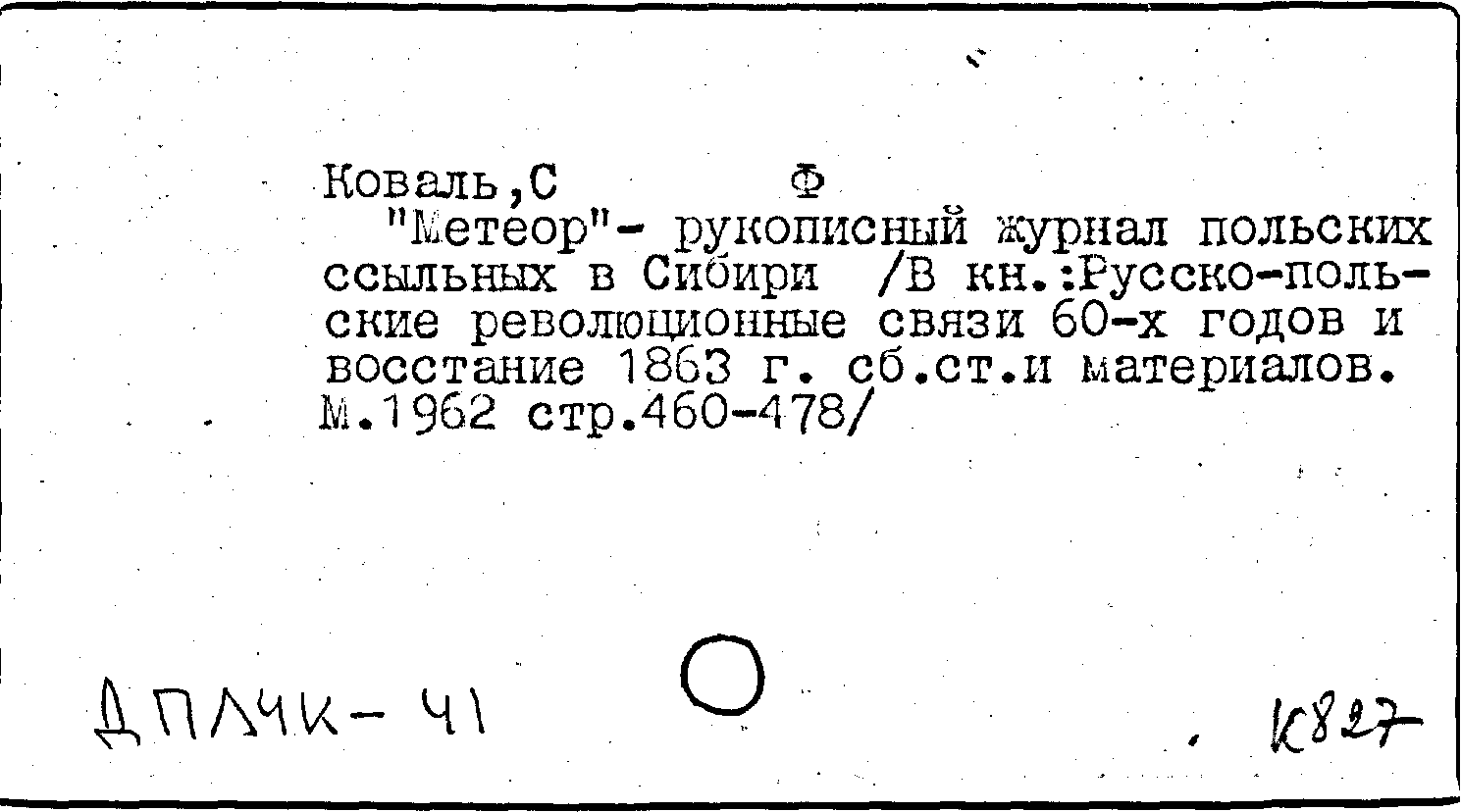 Книга (аналит. описание): "Метеор" - рукописный журнал польских ссыльных в Сибири