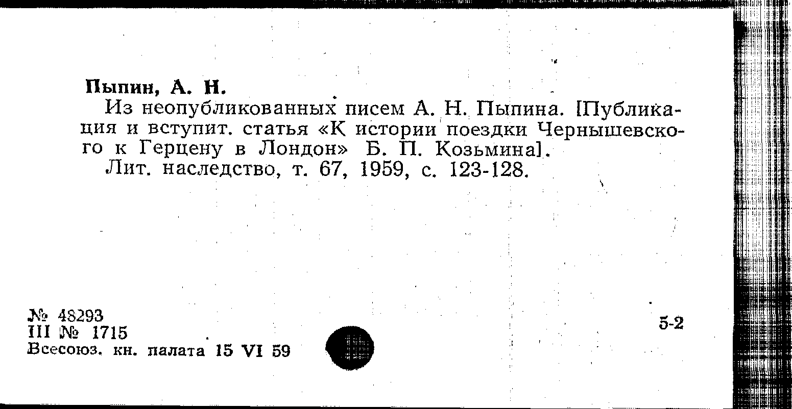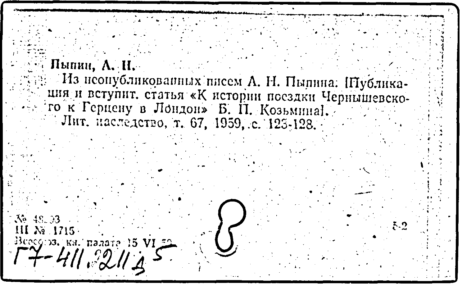 Книга (аналит. описание): Из неопубликованных писем А. Н. Пыпина
