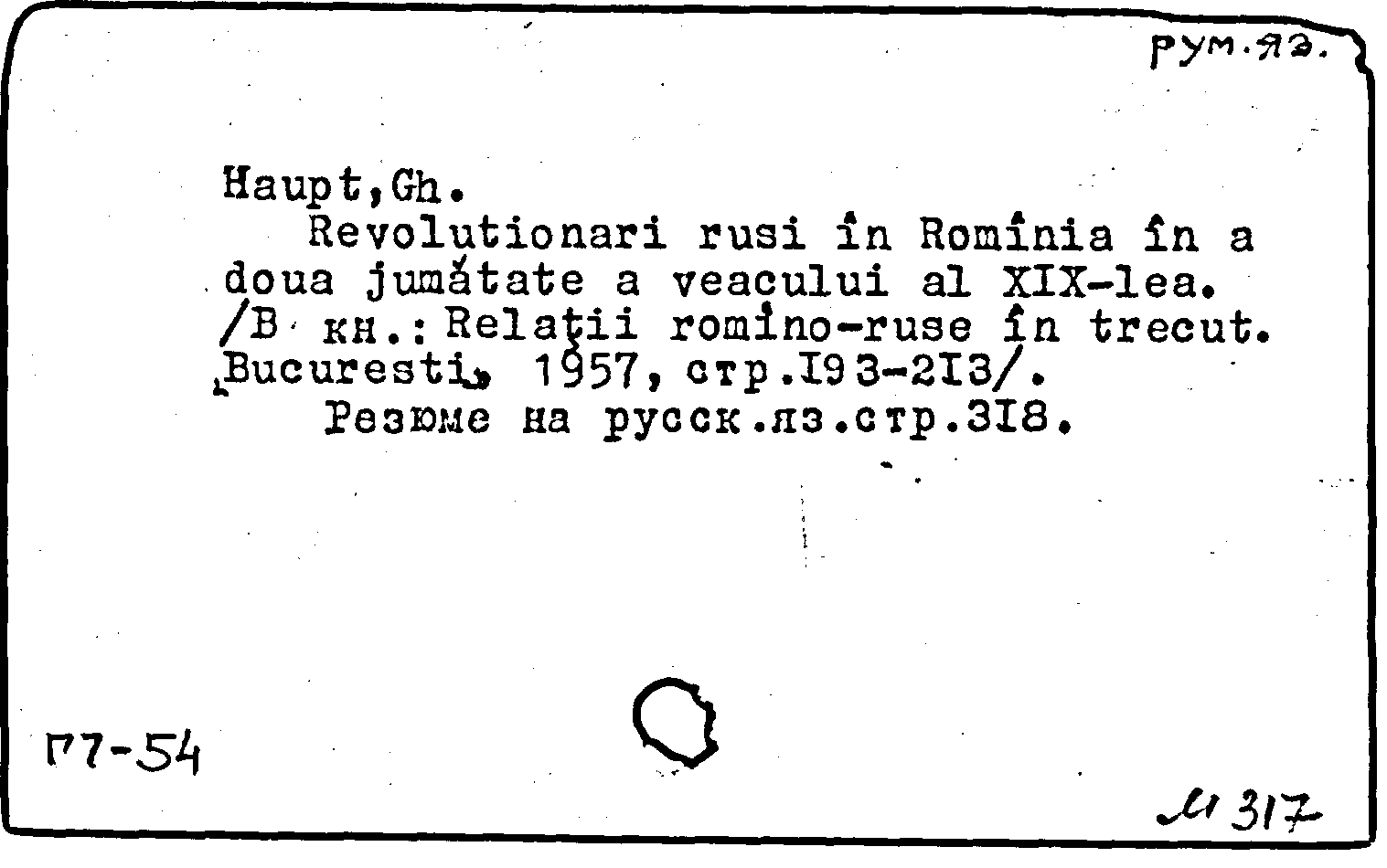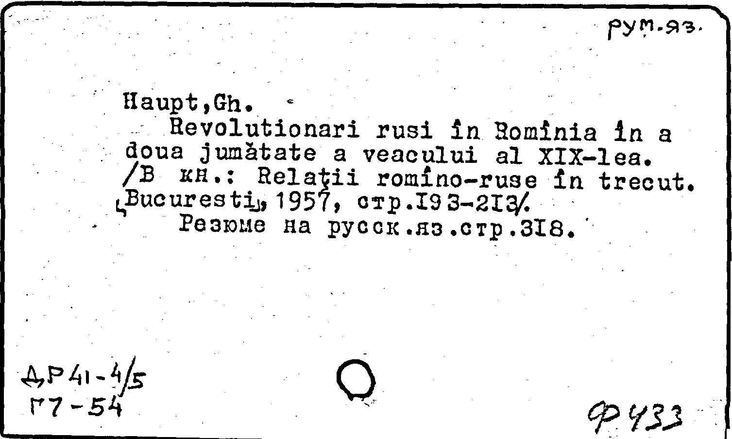 Книга (аналит. описание): Revolutionari rusi in Rominia in a doua jumatate a veacului al XIX-lea