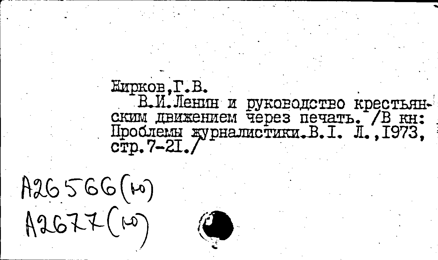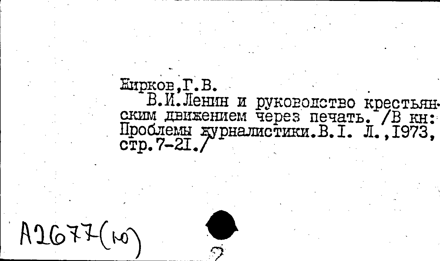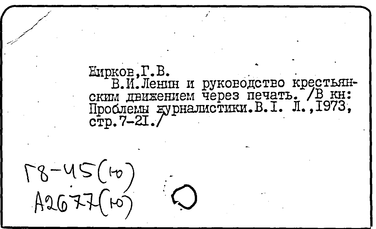 Книга (аналит. описание): В. И. Ленин и руководство крестьянским движением через печать