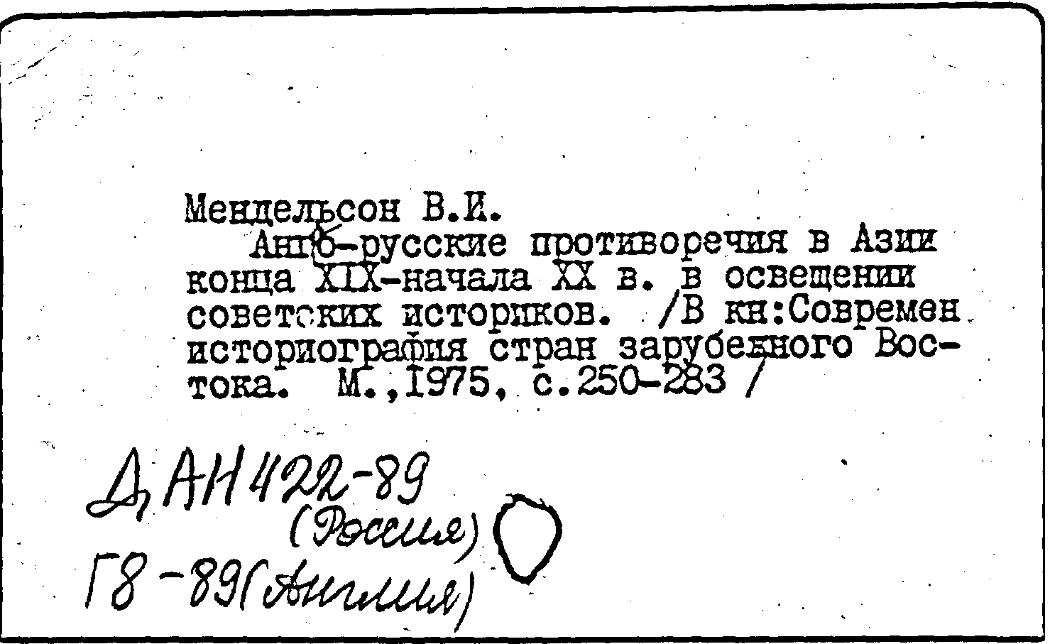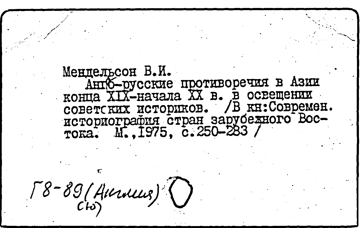 Книга (аналит. описание): Англо-русские противоречия в Азии конца XIX - начала XX века в освещении советских историков