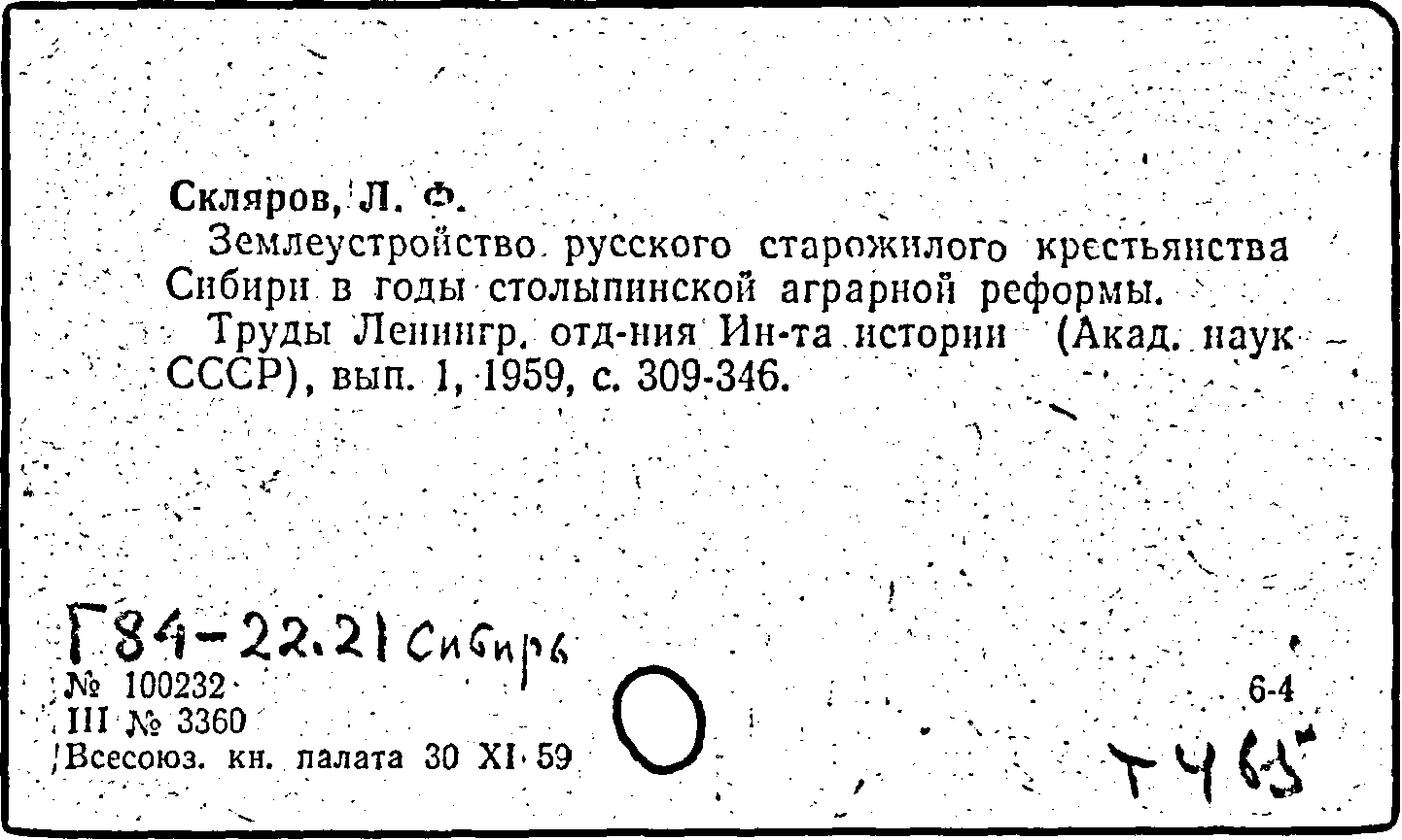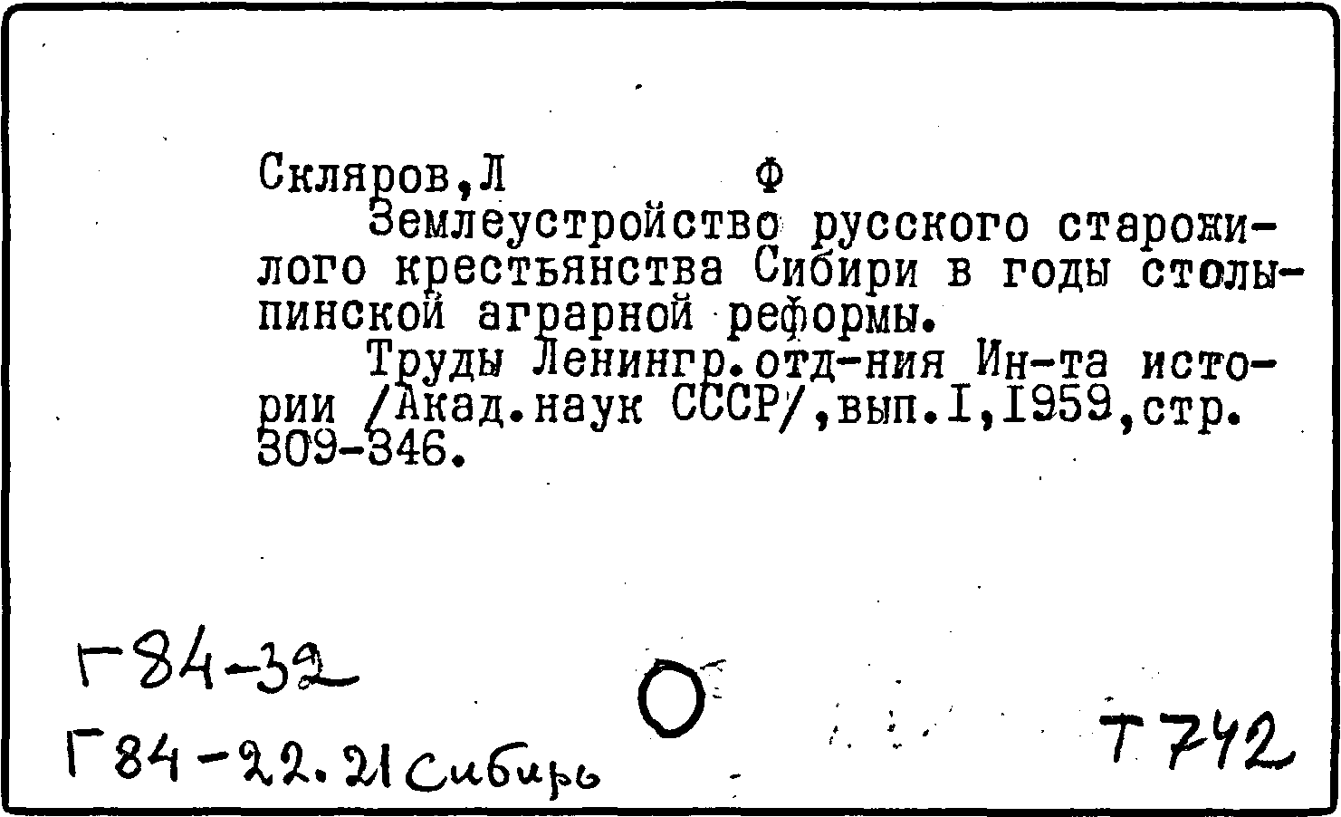 Книга (аналит. описание): Землеустройство русского старожилого крестьянства Сибири в годы столыпинской аграрной реформы