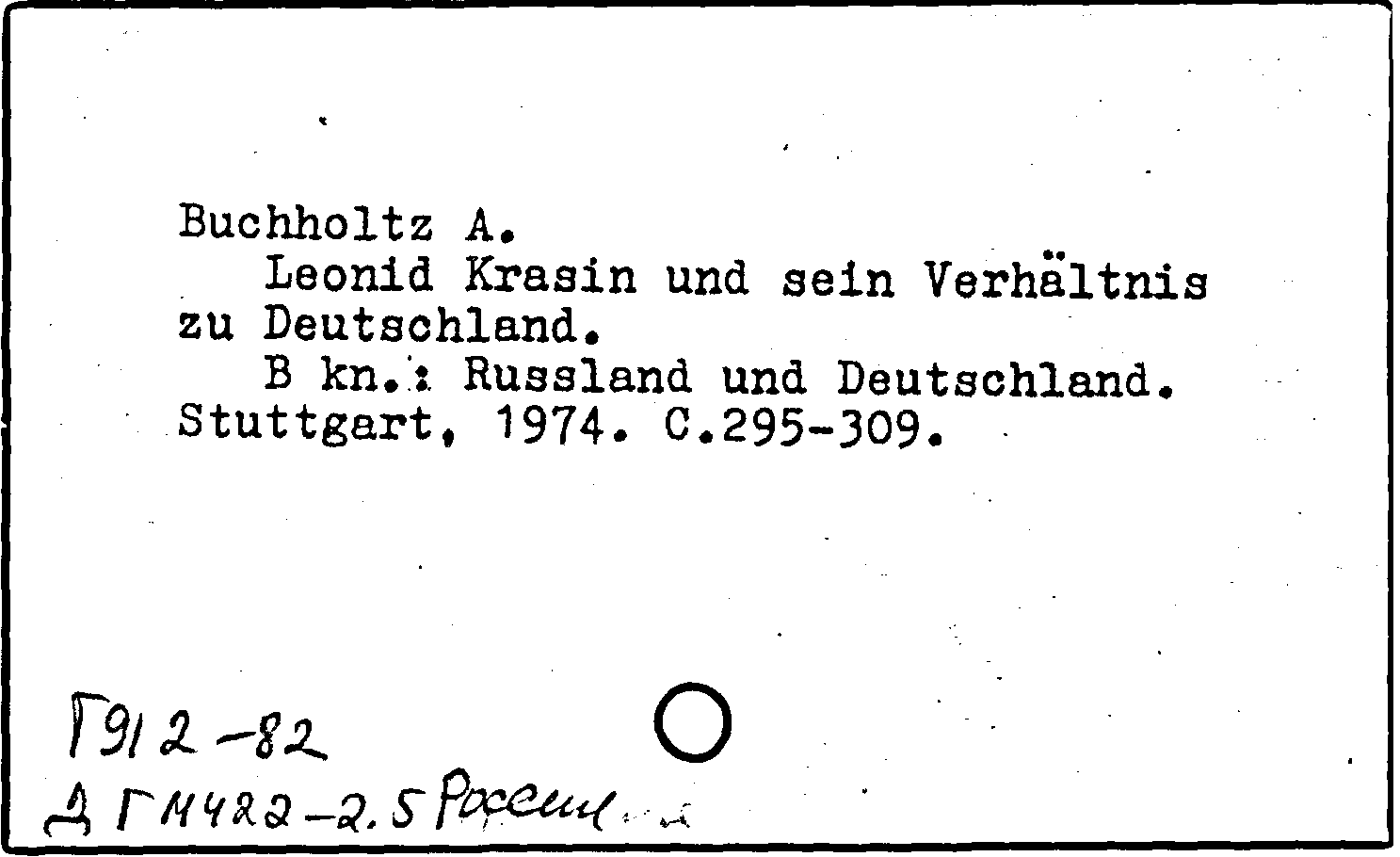 Книга (аналит. описание): Leonid Krasin und sein Verhaltnis zu Deutschland