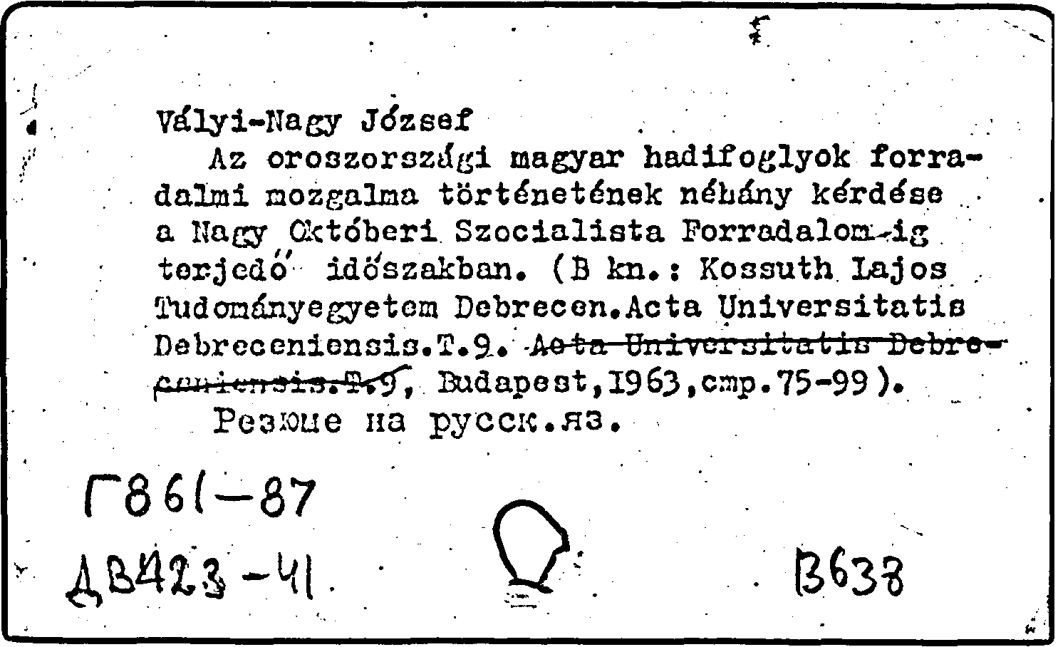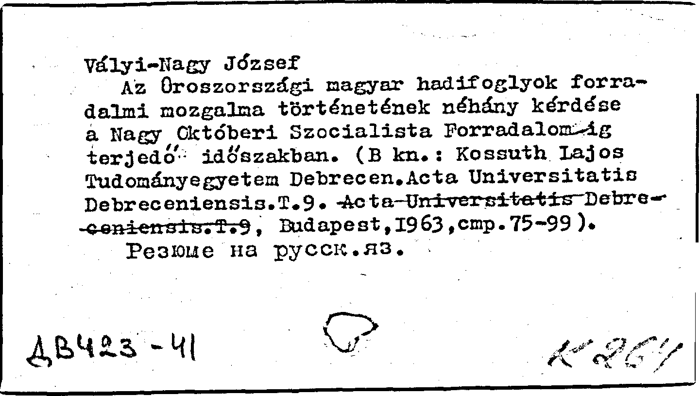 Книга (аналит. описание): Az oroszorszagi magyar hadifoglyok forradalmi mozgalma tortenetenek nehany kerdese a Nagy Oktoberi Szocialista Forradalomig terjedo idoszakban