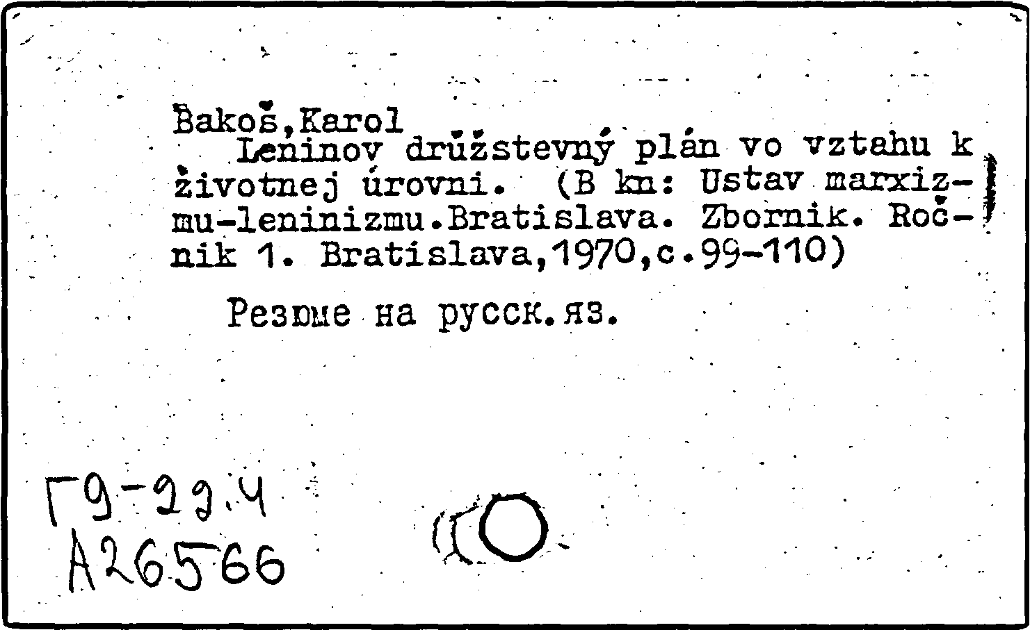 Книга (аналит. описание): Leninov druzstevny plan vo vztahu k zivotnej urovni