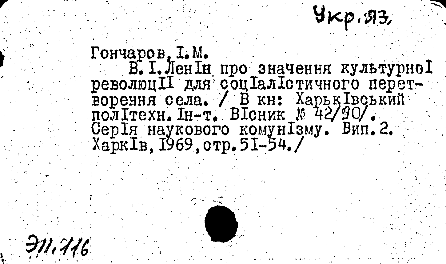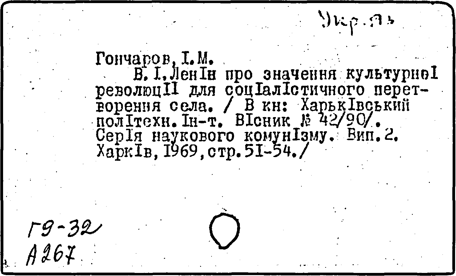 Книга (аналит. описание): В. I. Ленiн про значення культурноi революцii для соцiалiстичного перетворення села