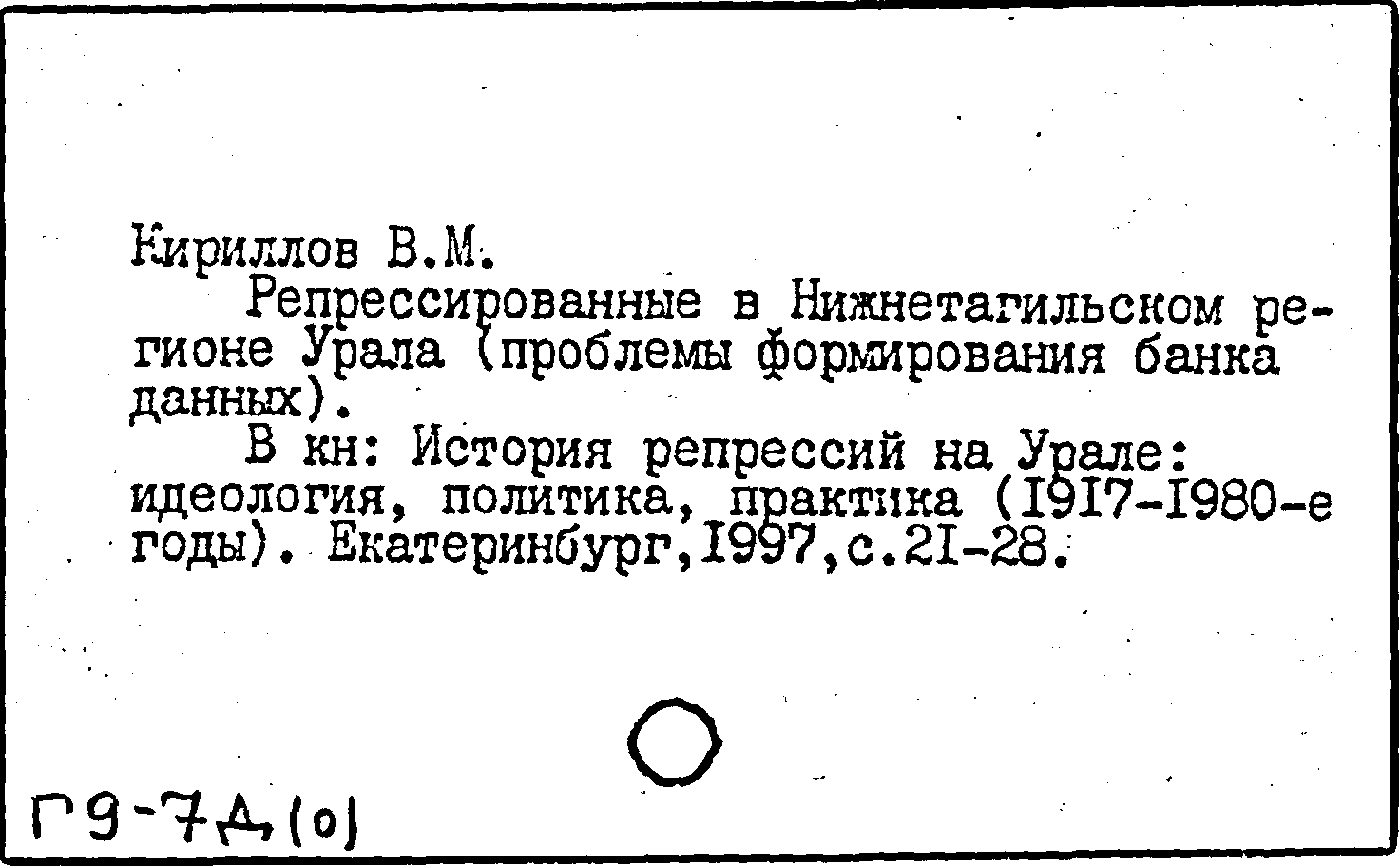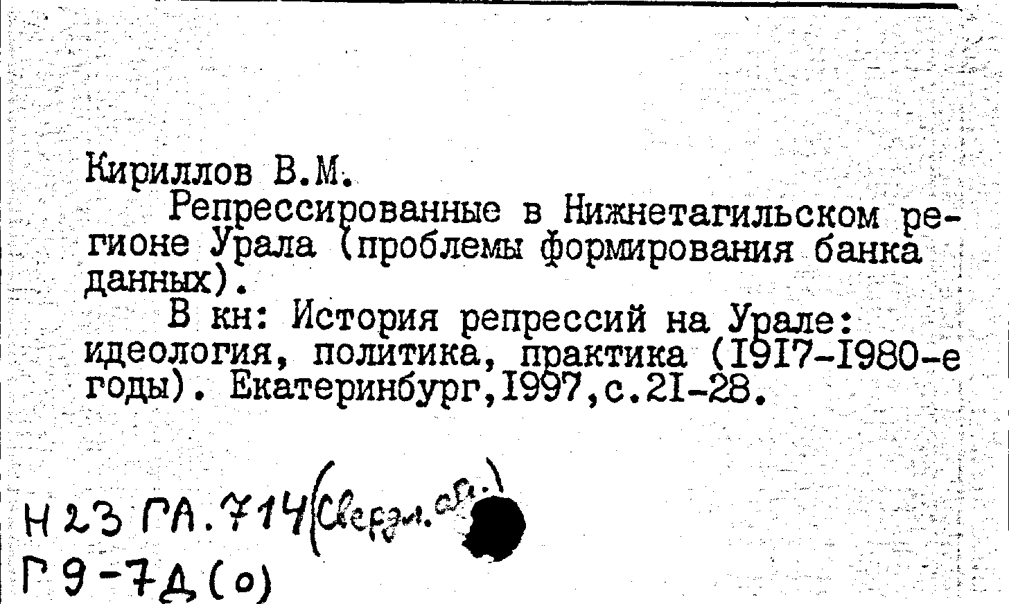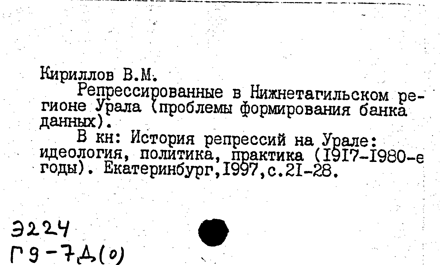 Репрессированные в Нижнетагильском регионе Урала (проблемы формирования банка данных)