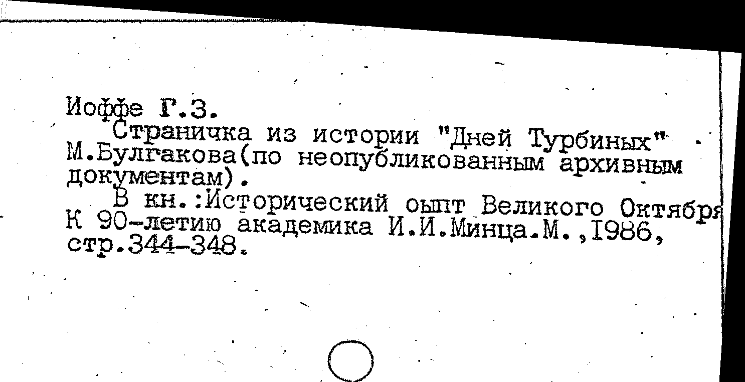 Книга (аналит. описание): Страничка из истории "Дней Турбиных" М. Булгакова (по неопубликованным архивным документам)