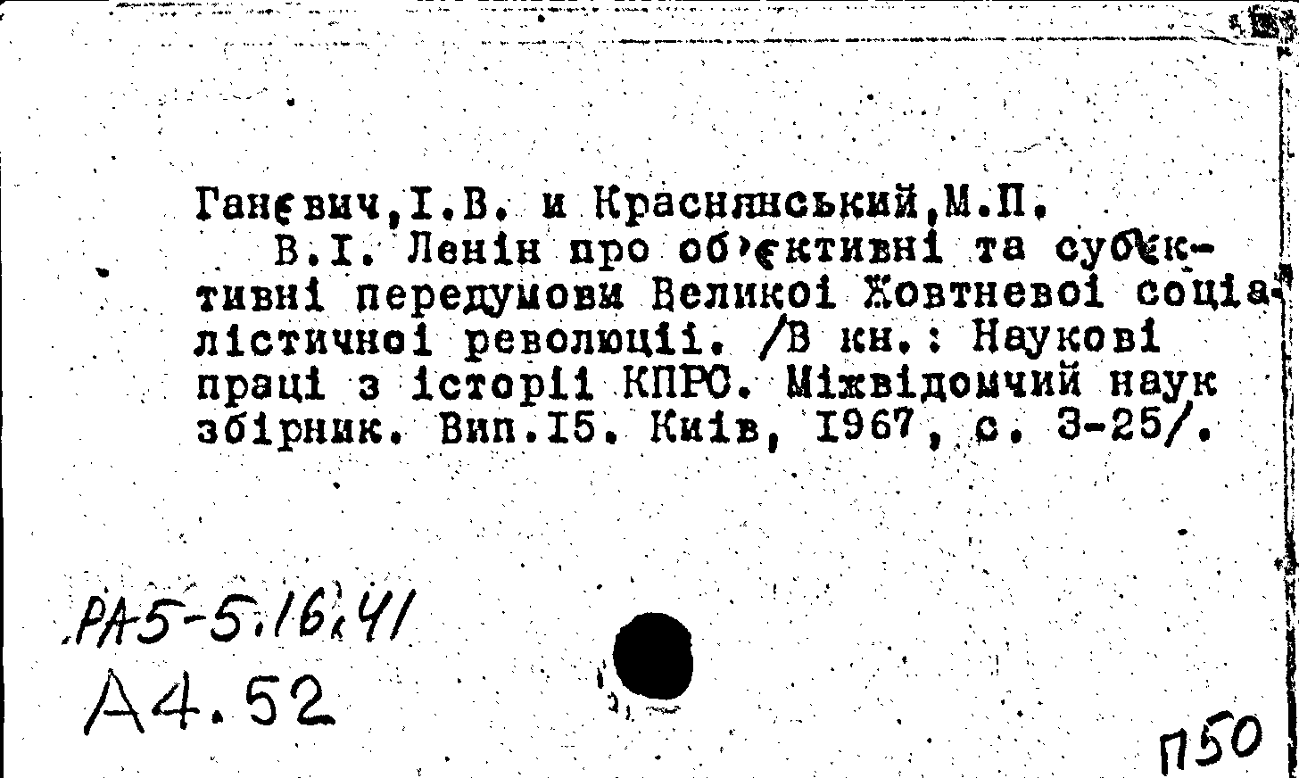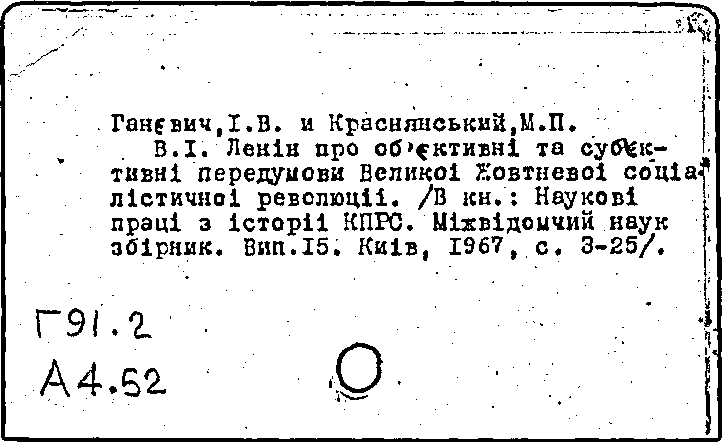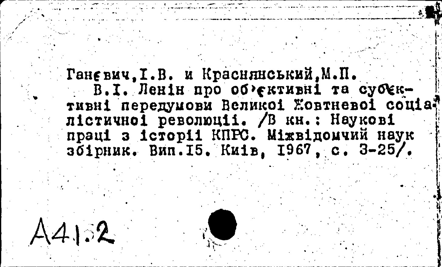 Книга (аналит. описание): В. I. Ленiн про об'ективнi та суб'ективнi передумови Великоi Жовтневоi соцiалiстичноi революцii