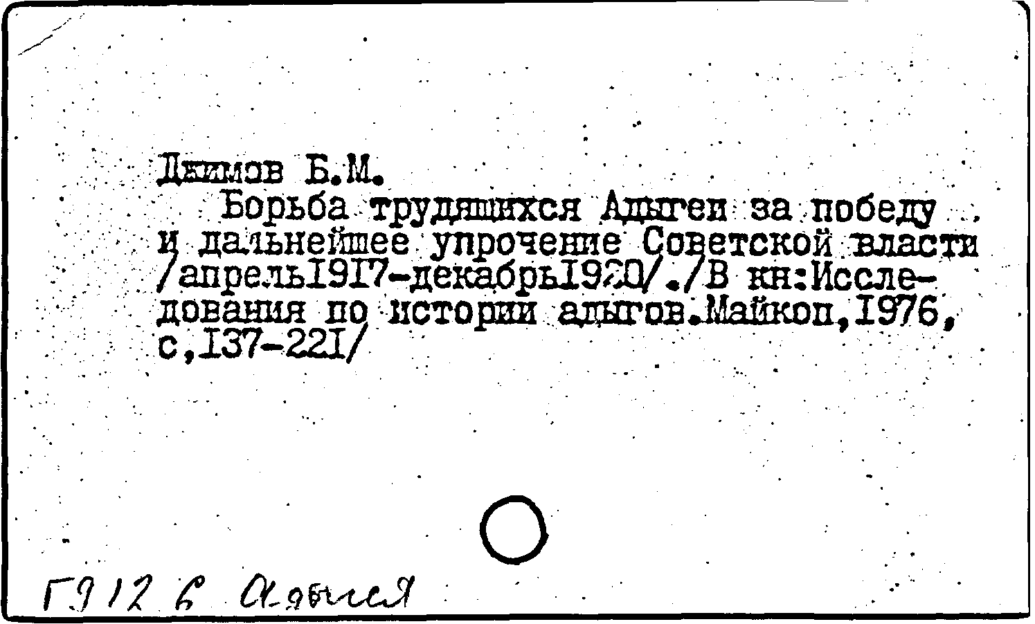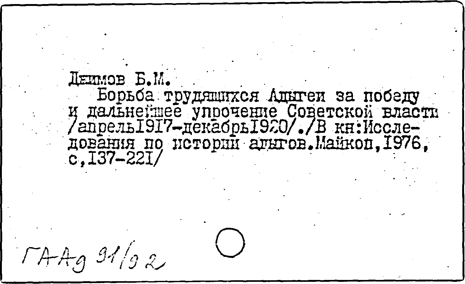 Книга (аналит. описание): Борьба трудящихся Адыгеи за победу и дальнейшее упрочение Советской власти (апрель 1917 - декабрь 1920)