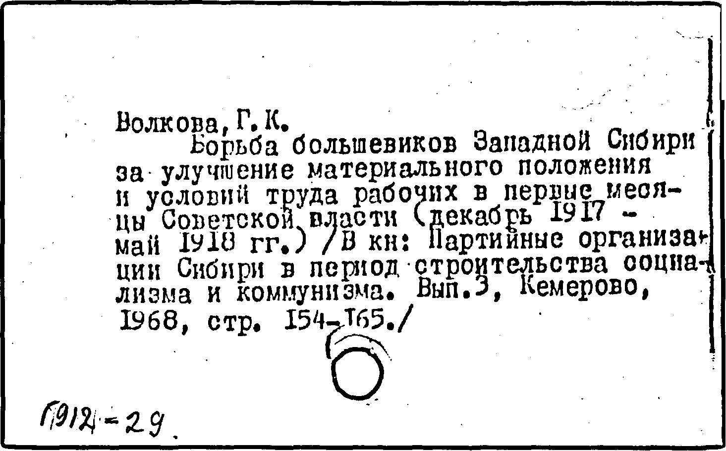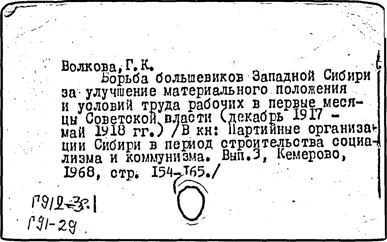 Книга (аналит. описание): Борьба большевиков Западной Сибири за улучшение материального положения и условий труда рабочих в первые месяцы Советской власти (декабрь 1917 - май 1918 гг.)
