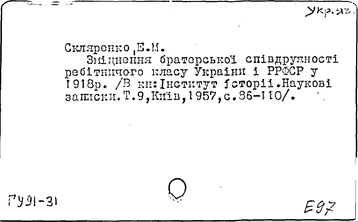 Книга (аналит. описание): Змiцнення братерськоi спiвдружностi ребiтничого класу Украiни i РРФСР у 1918 р.