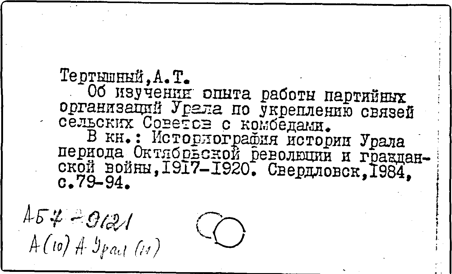 Книга (аналит. описание): Об изучении опыта работы партийных организаций Урала по укреплению связей сельских Советов с комбедами