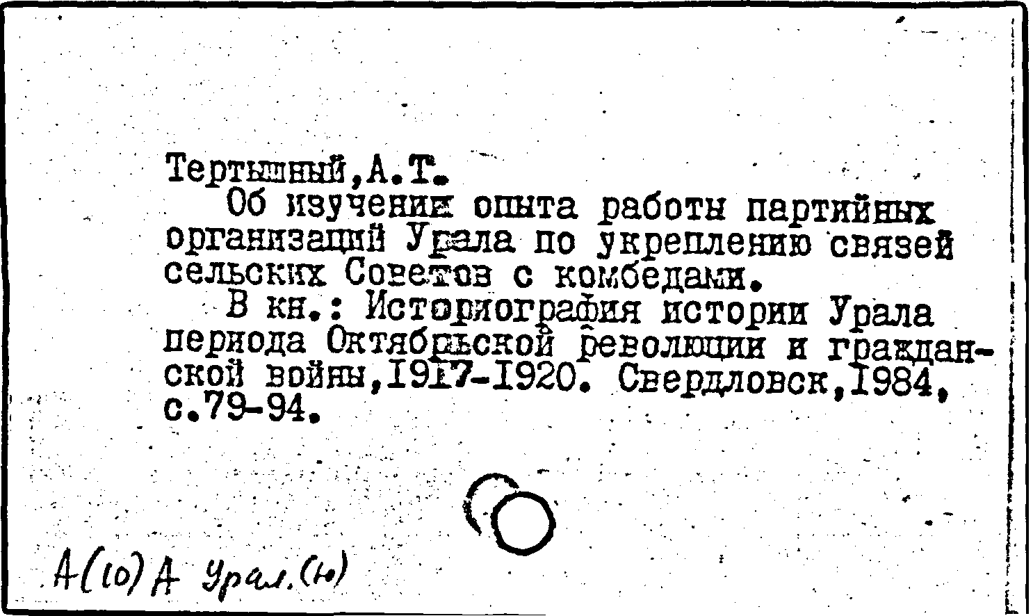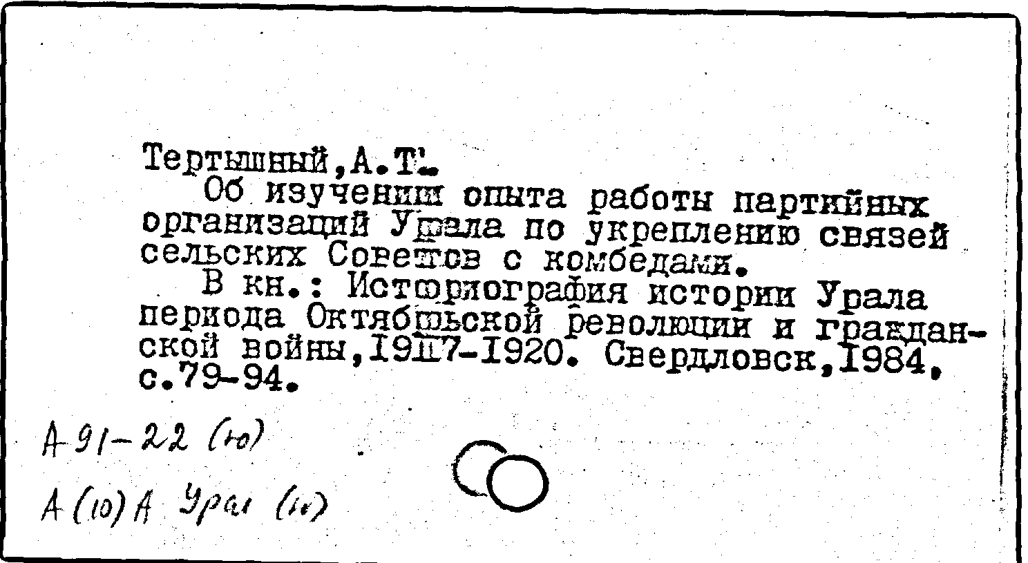 Об изучении опыта работы партийных организаций Урала по укреплению связей сельских Советов с комбедами