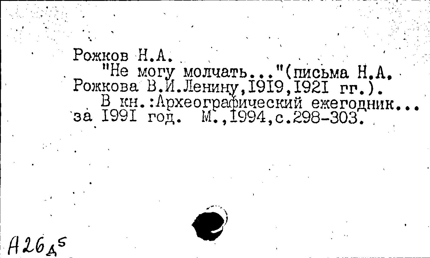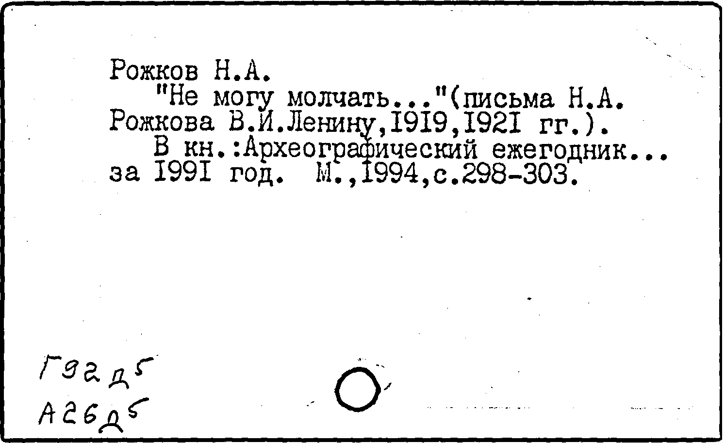 Книга (аналит. описание): "Не могу молчать..." (письма Н. А. Рожкова В. И. Ленину, 1919, 1921 гг.)