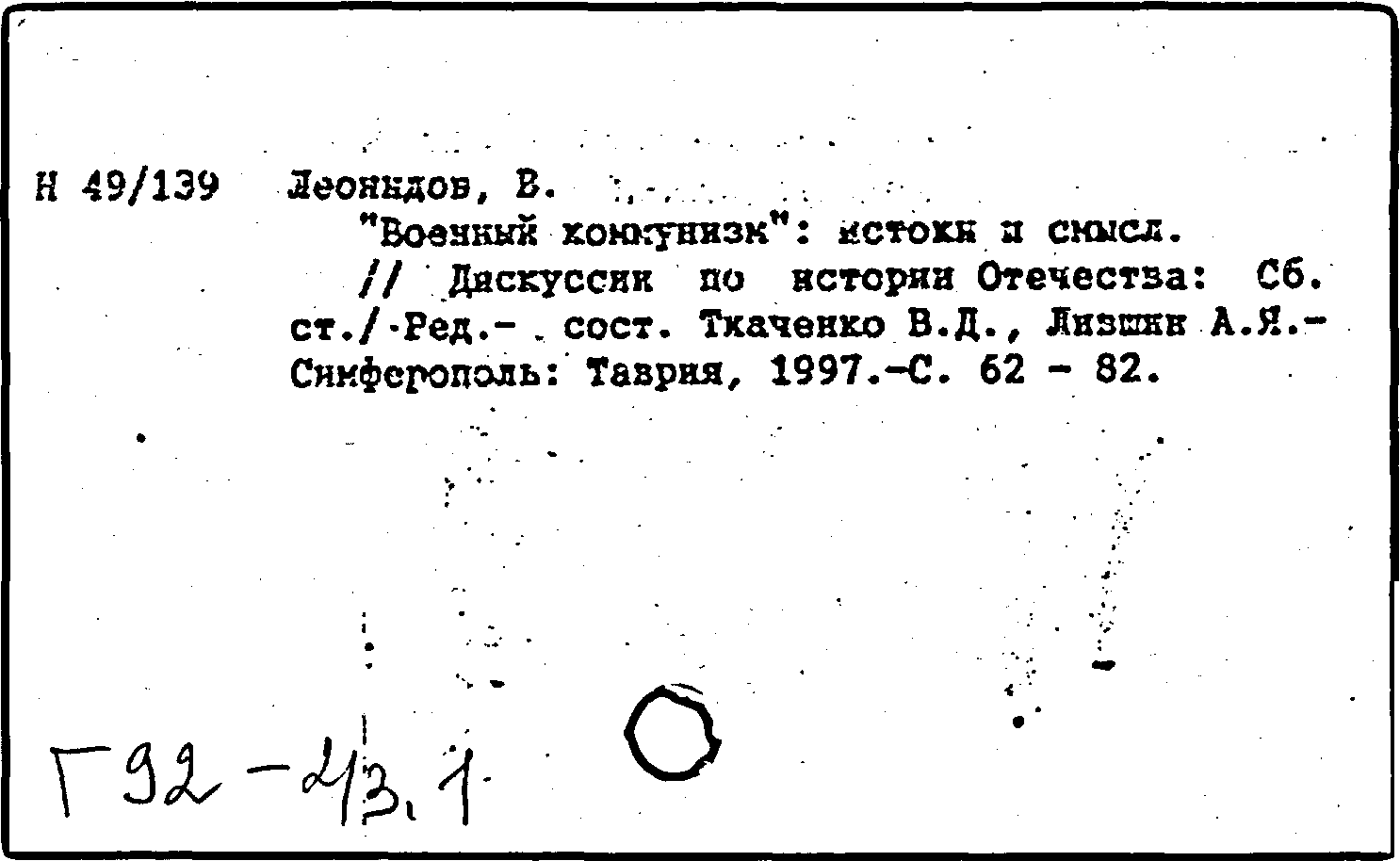 Книга (аналит. описание): "Военный коммунизм": истоки и смысл