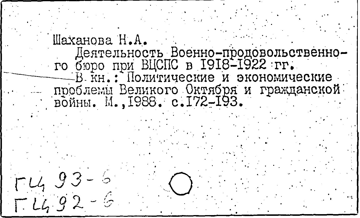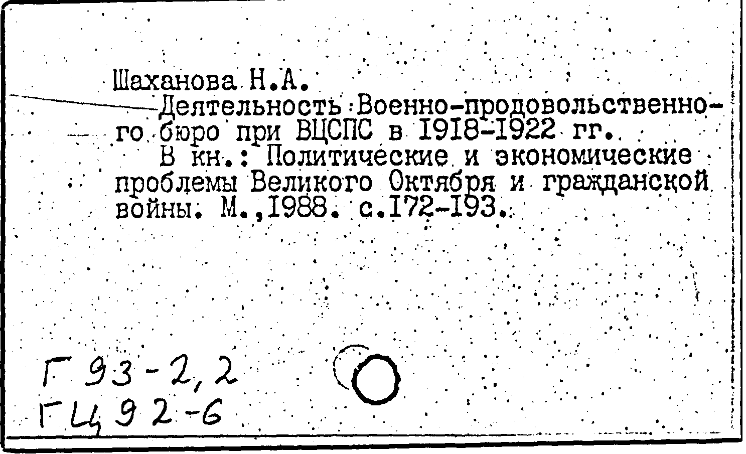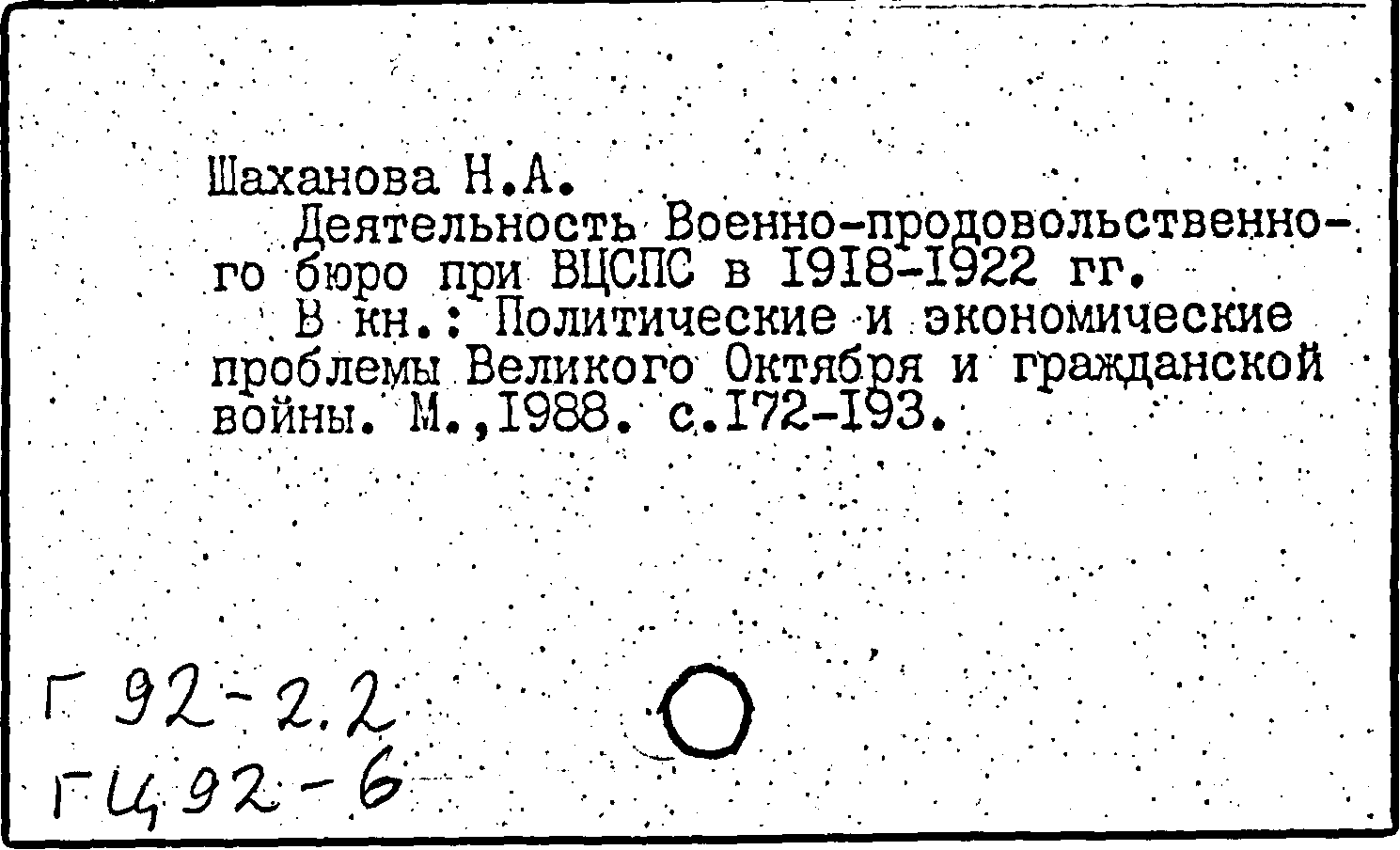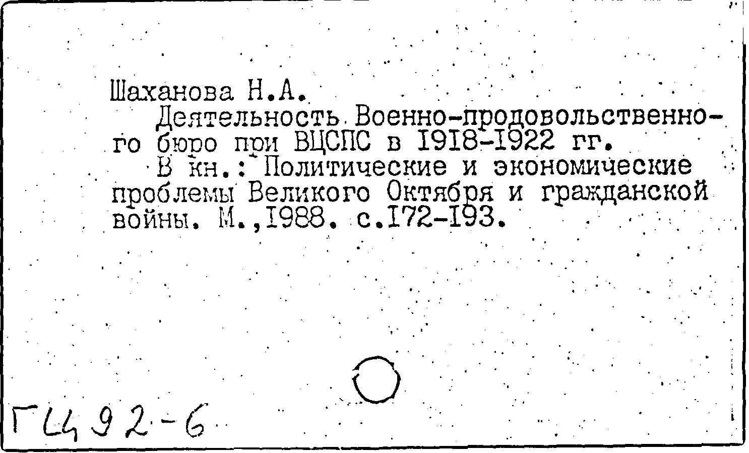 Деятельность Военно-продовольственного бюро при ВЦСПС в 1918-1922 гг.
