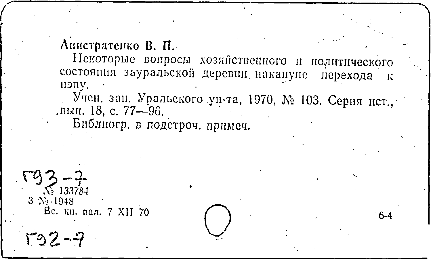 Некоторые вопросы хозяйственного и политического состояния зауральской деревни накануне перехода к нэпу
