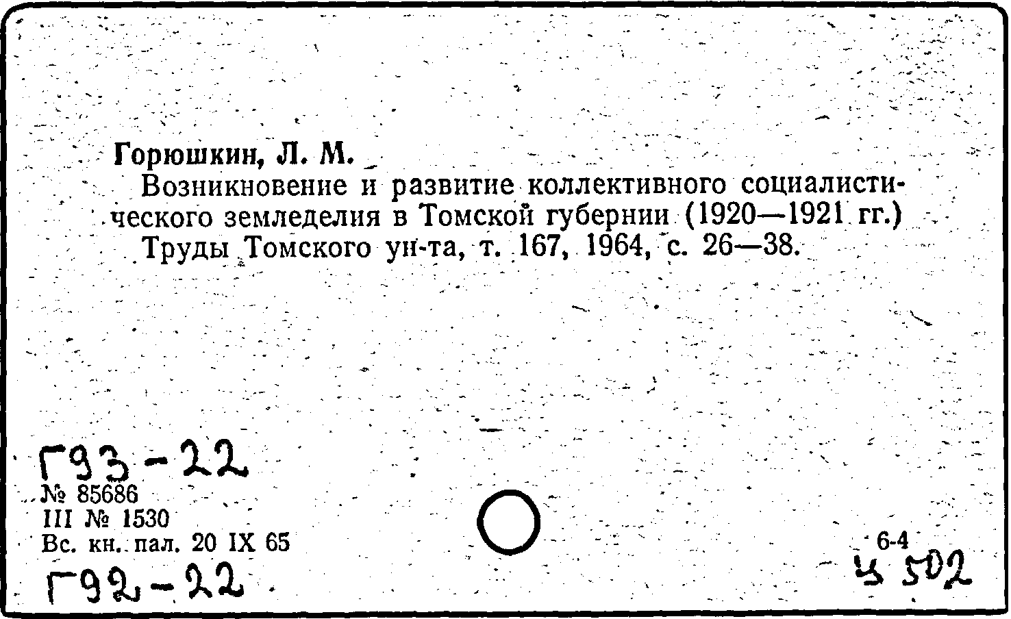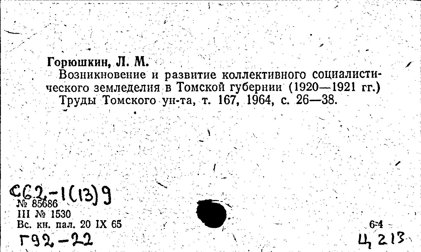 Книга (аналит. описание): Возникновение и развитие коллективного социалистического земледелия в Томской губернии (1920-1921 гг.)