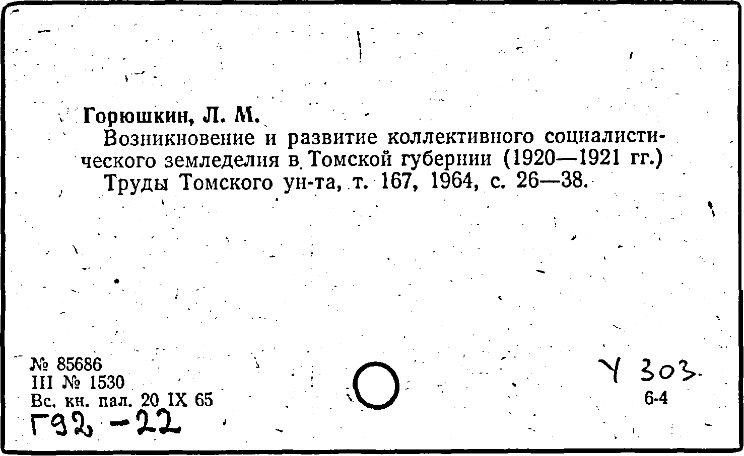 Возникновение и развитие коллективного социалистического земледелия в Томской губернии (1920-1921 гг.)