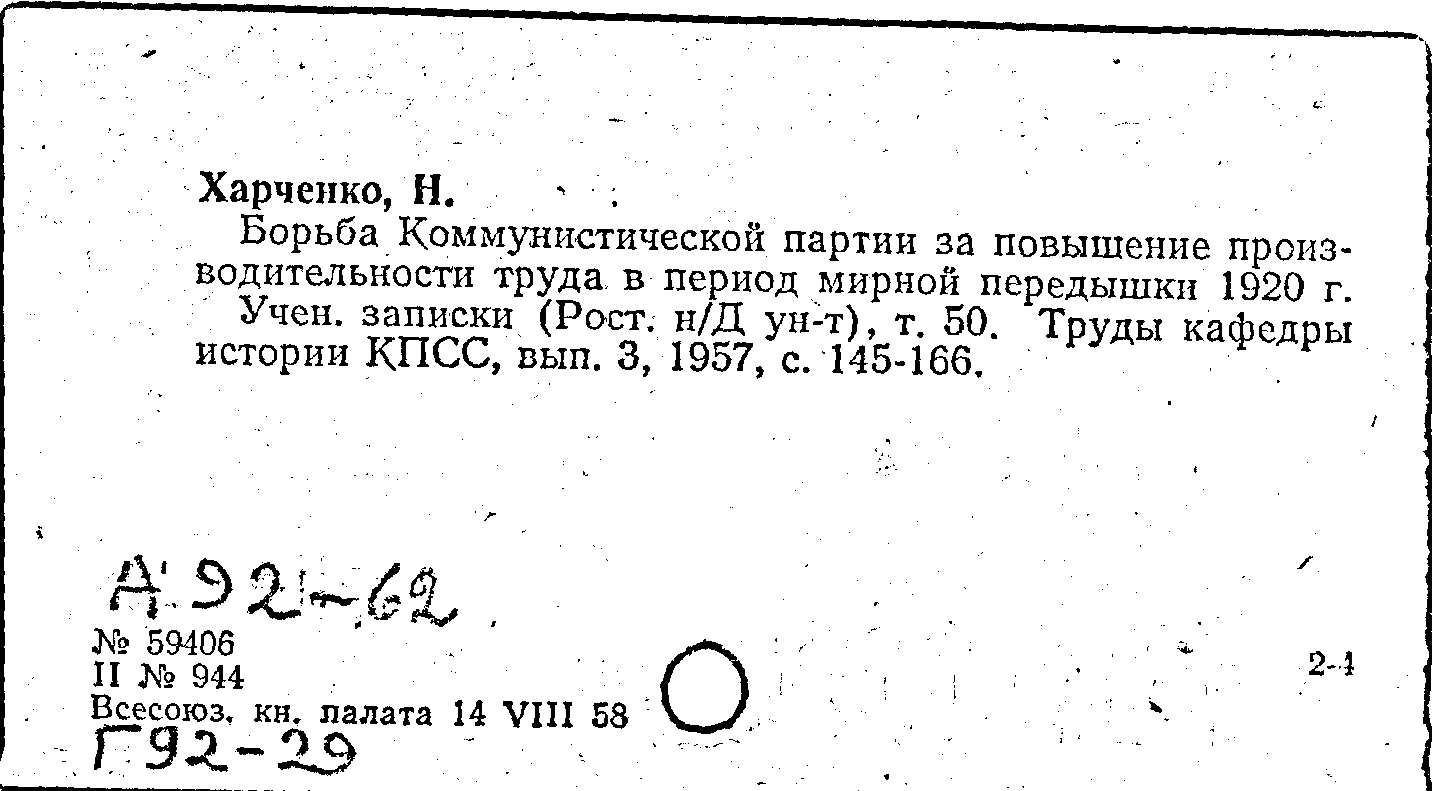 Книга (аналит. описание): Борьба Коммунистической партии за повышение производительности труда в период мирной передышки 1920 г.
