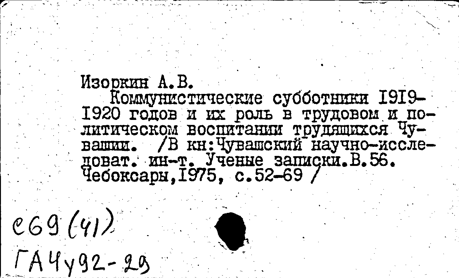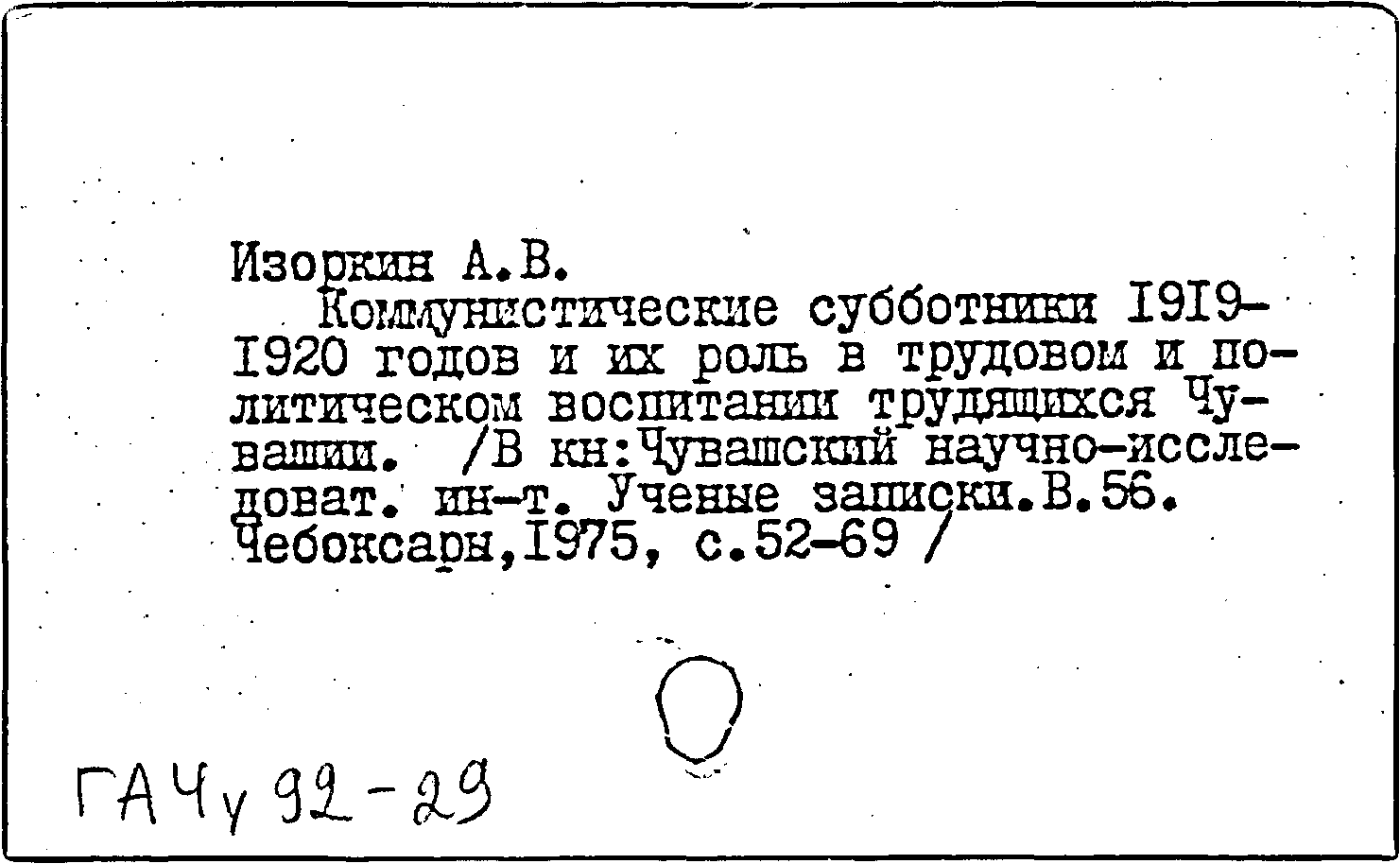Книга (аналит. описание): Коммунистические субботники 1919-1920 годов и их роль в трудовом и политическом воспитании трудящихся Чувашии