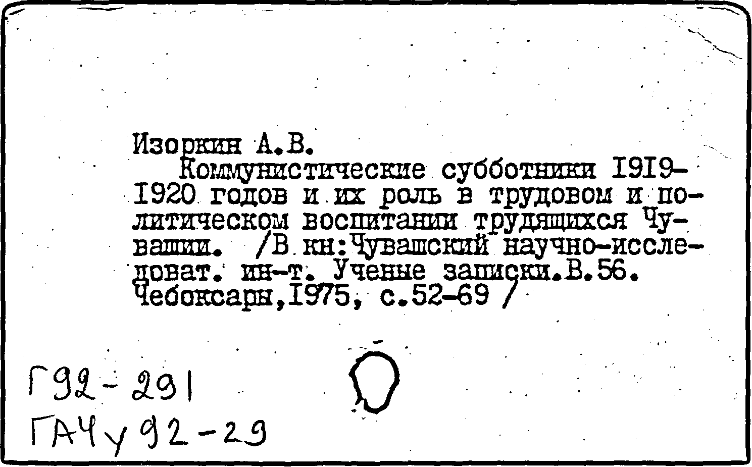 Коммунистические субботники 1919-1920 годов и их роль в трудовом и политическом воспитании трудящихся Чувашии