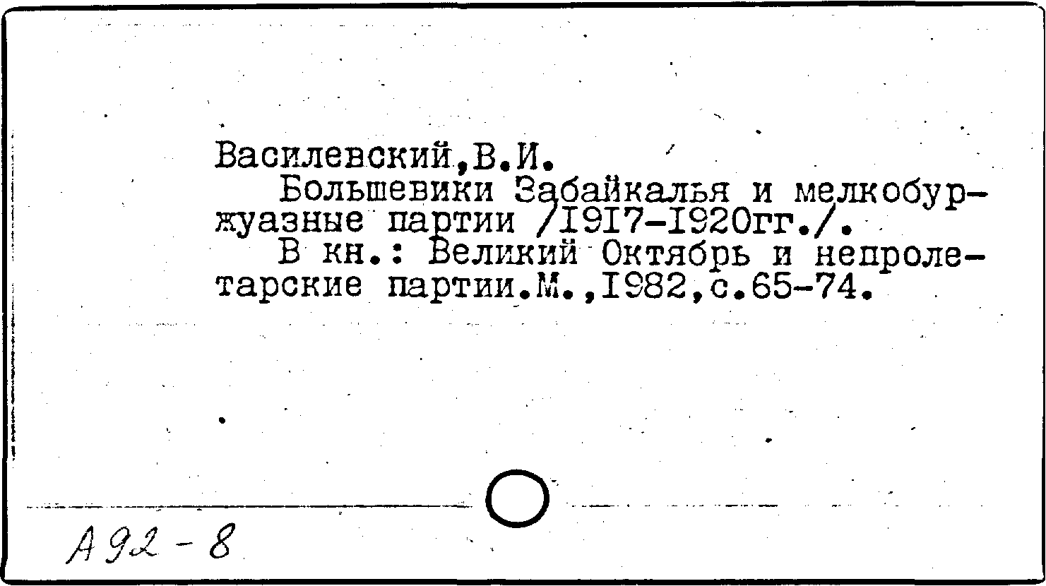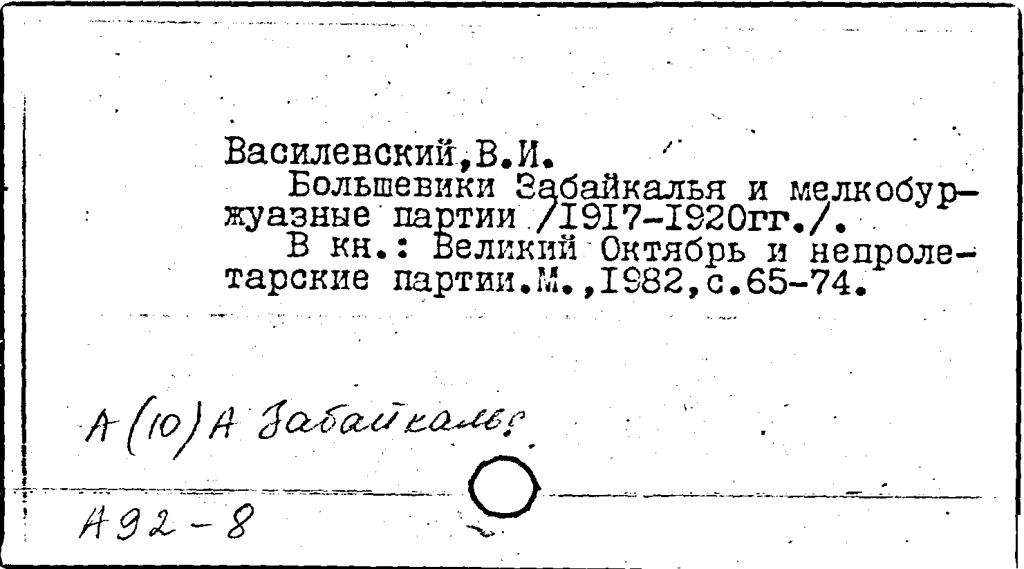 Книга (аналит. описание): Большевики Забайкалья и мелкобуржуазные партии (1917-1920 гг.)