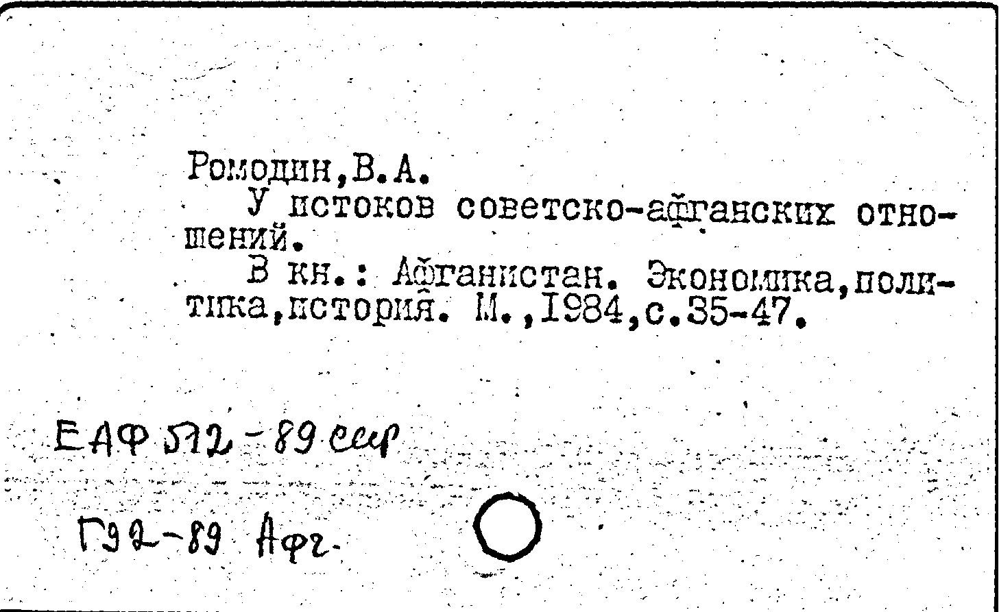 Книга (аналит. описание): У истоков советско-афганских отношений