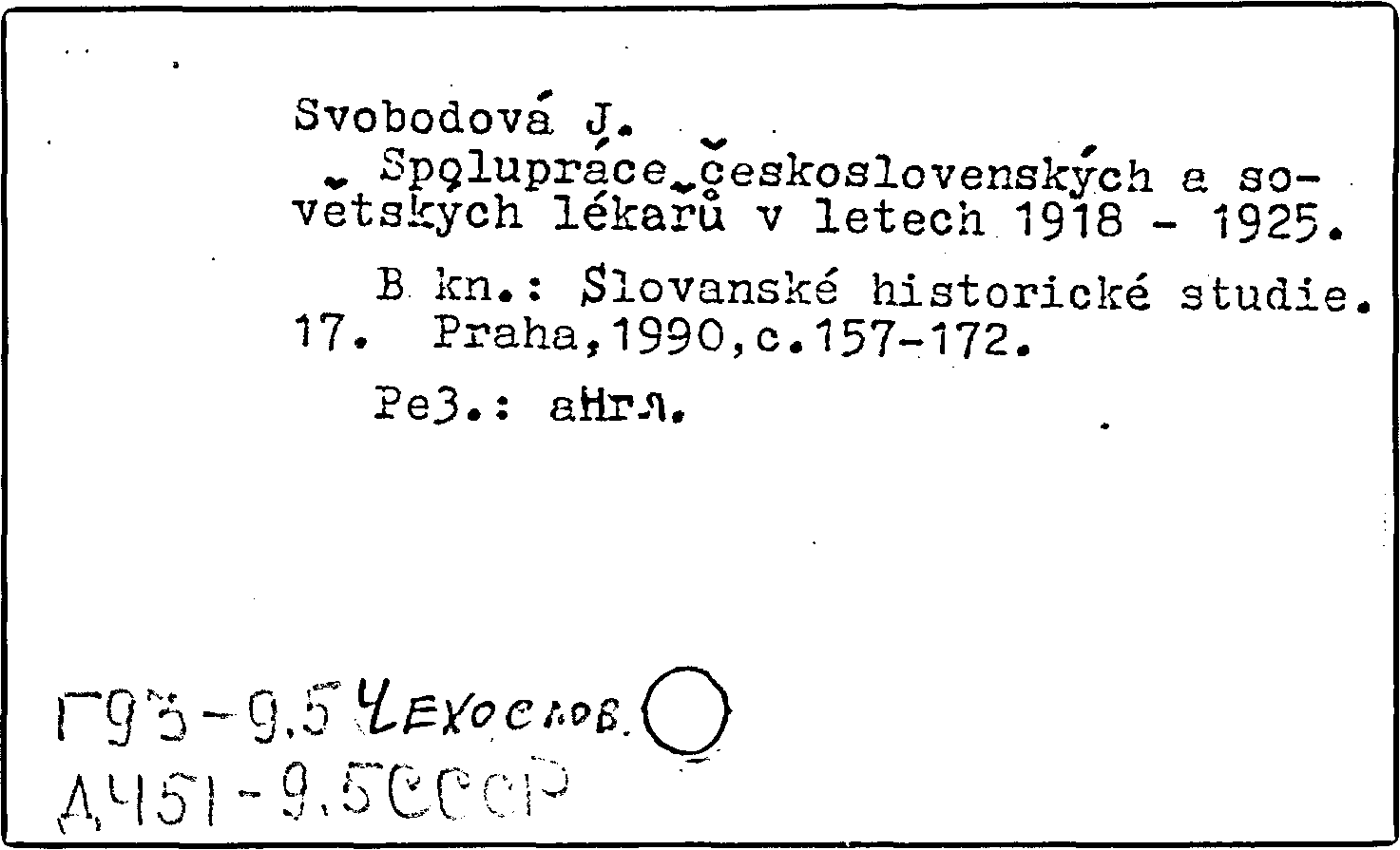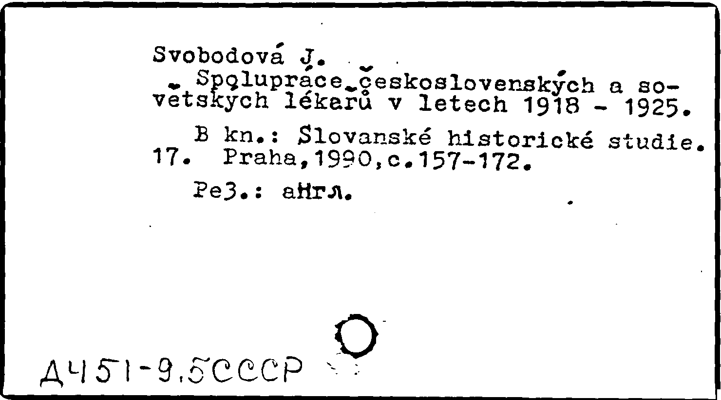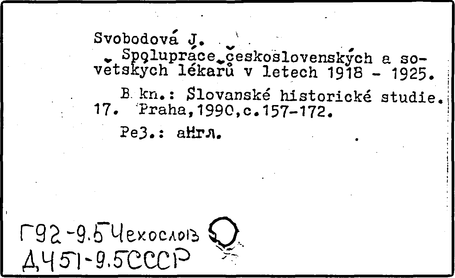 Книга (аналит. описание): Spoluprace ceskoslovenskych a sovetskych lekaru v letech 1918-1925