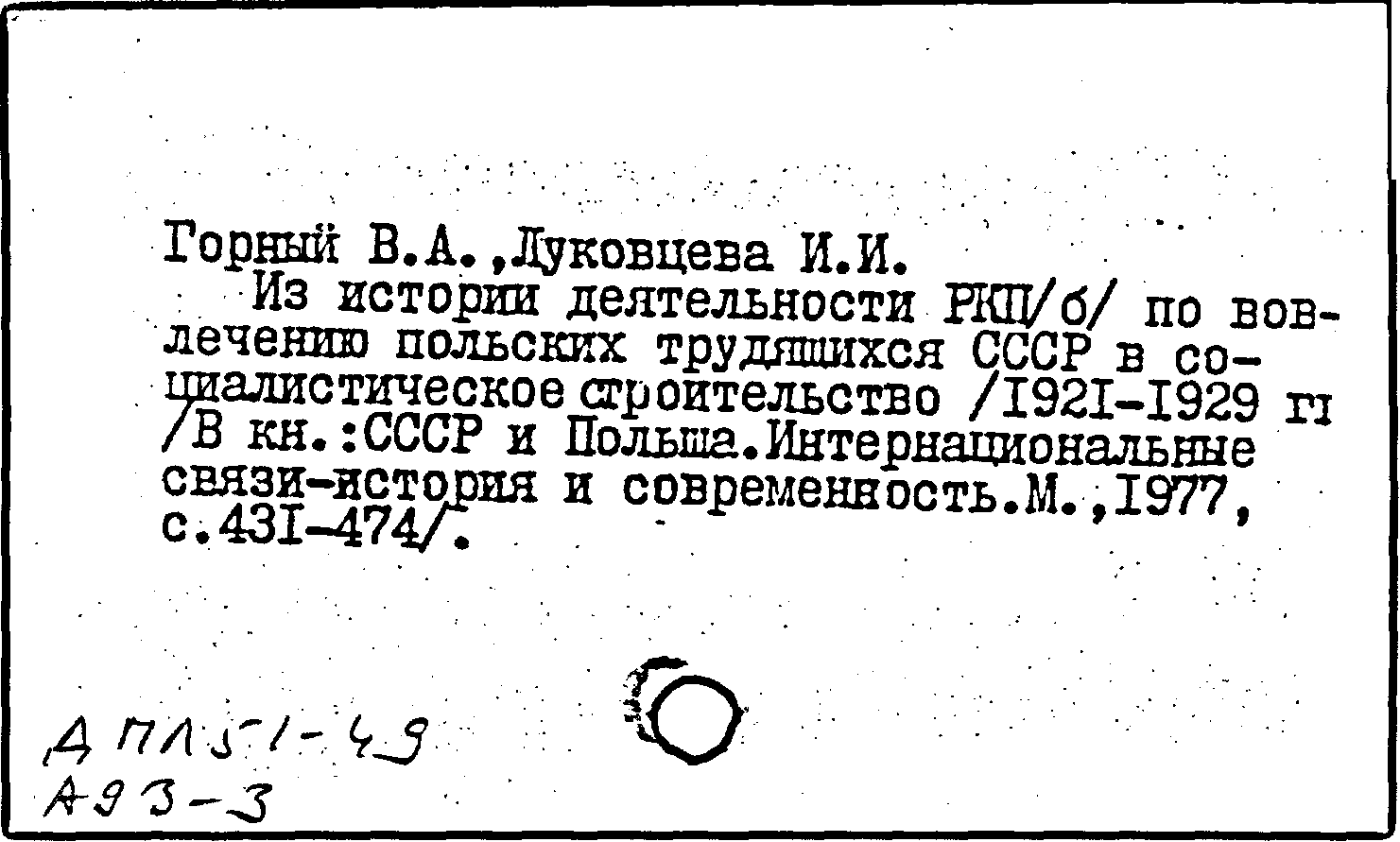 Книга (аналит. описание): Из истории деятельности РКП(б) по вовлечению польских трудящихся СССР в социалистическое строительство (1921-1929 гг.)