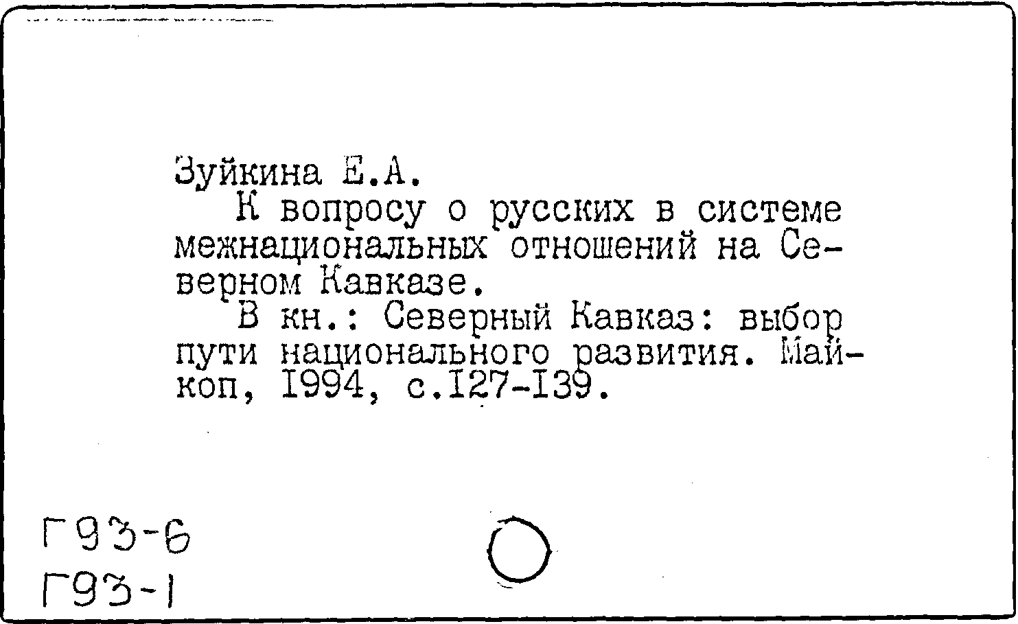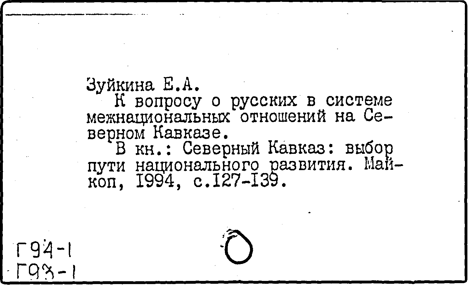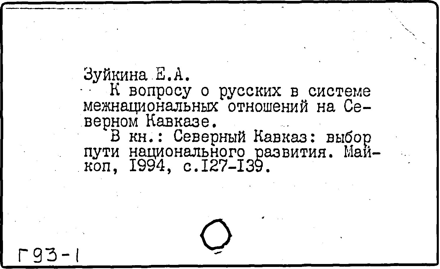 К вопросу о русских в системе межнациональных отношений на Северном Кавказе