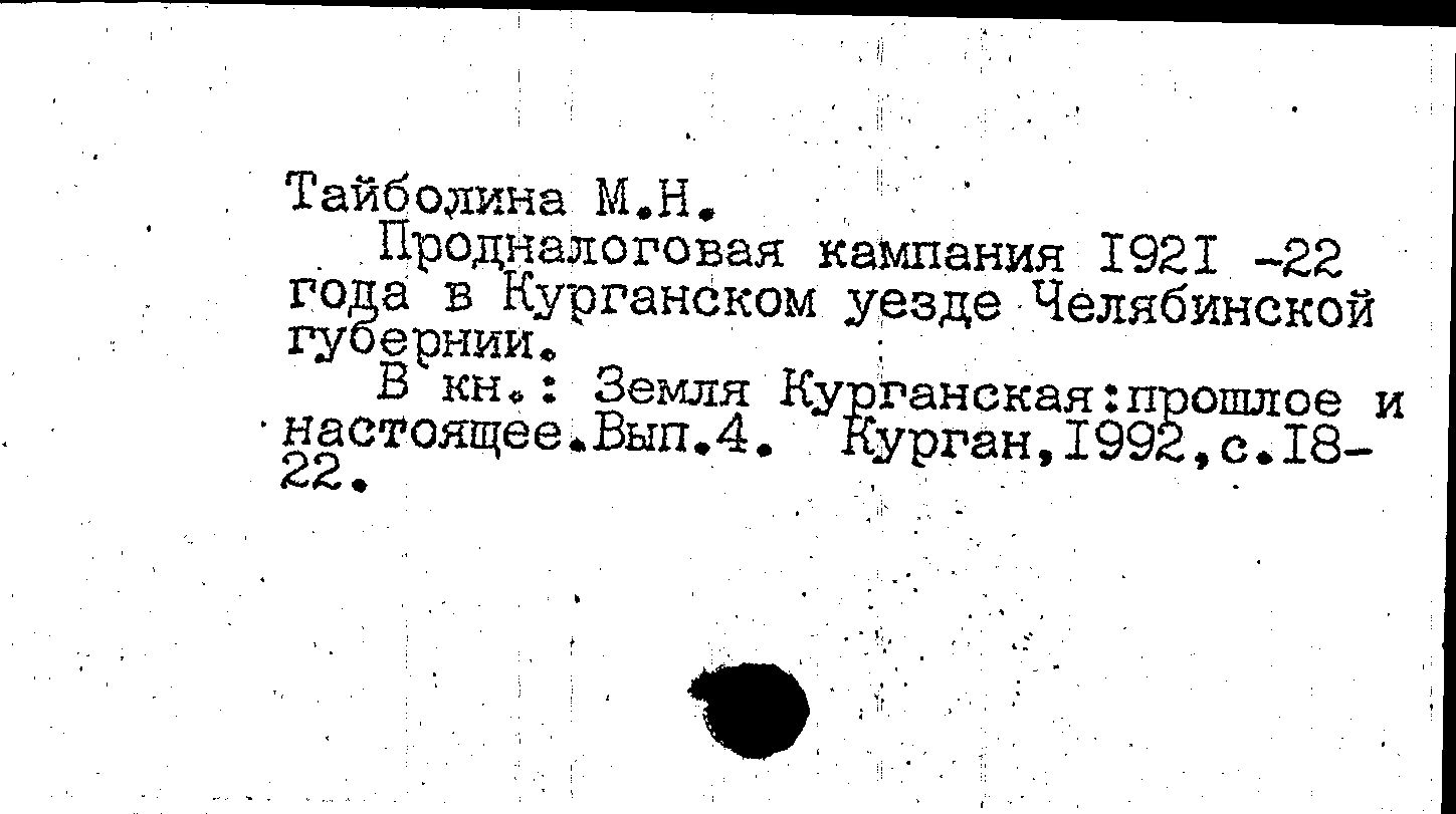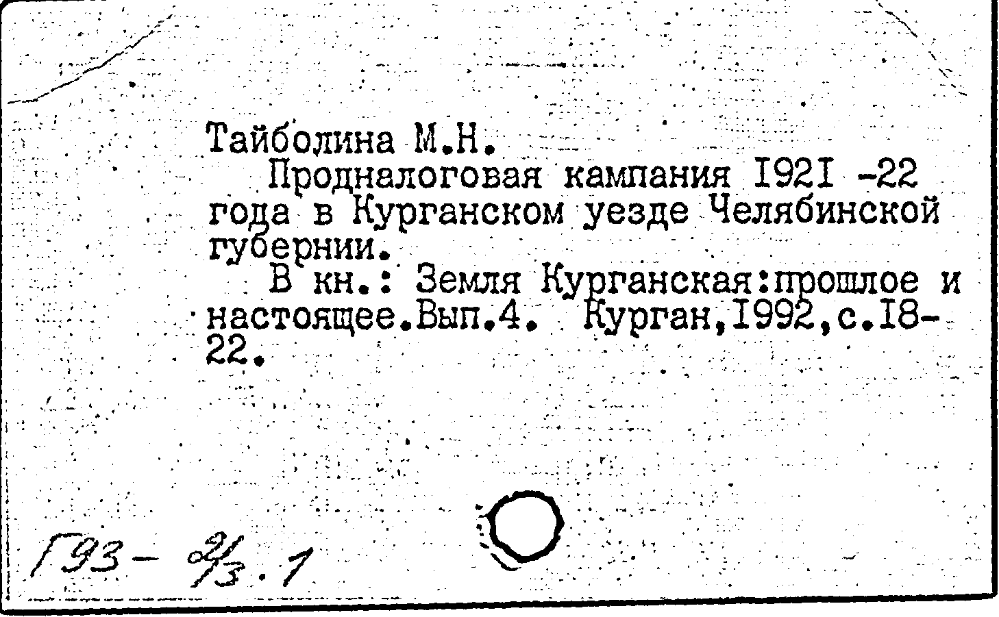 Продналоговая кампания 1921-22 года в Курганском уезде Челябинской губернии