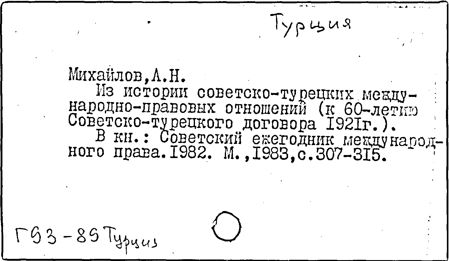 Книга (аналит. описание): Из истории советско-турецких международно-правовых отношений (к 60-летию советско-турецкого договора 1921 г.)