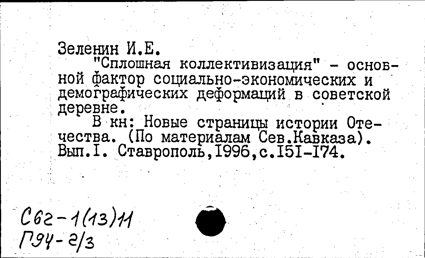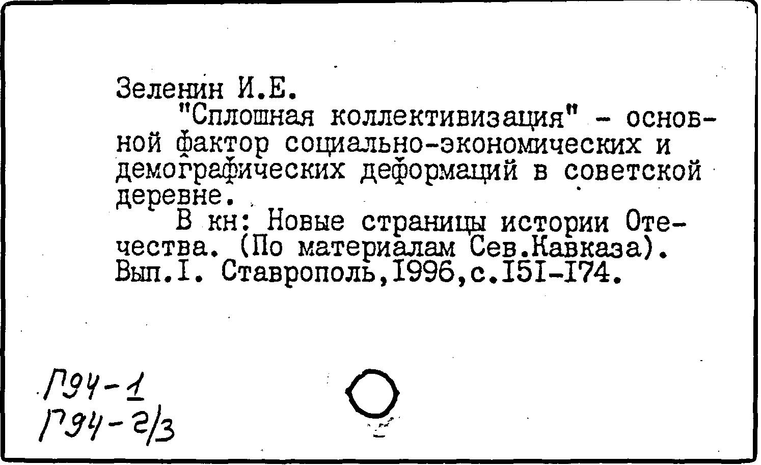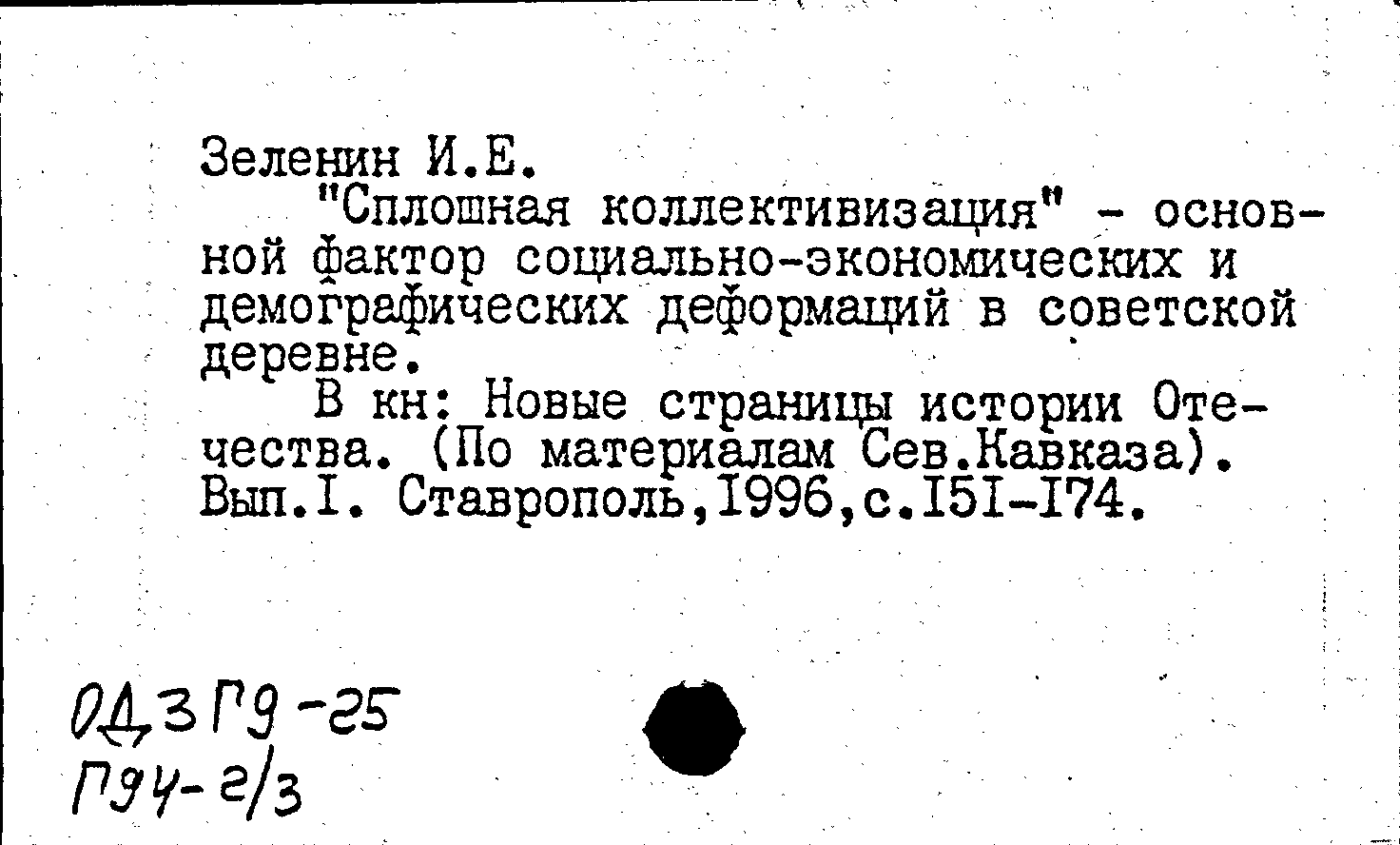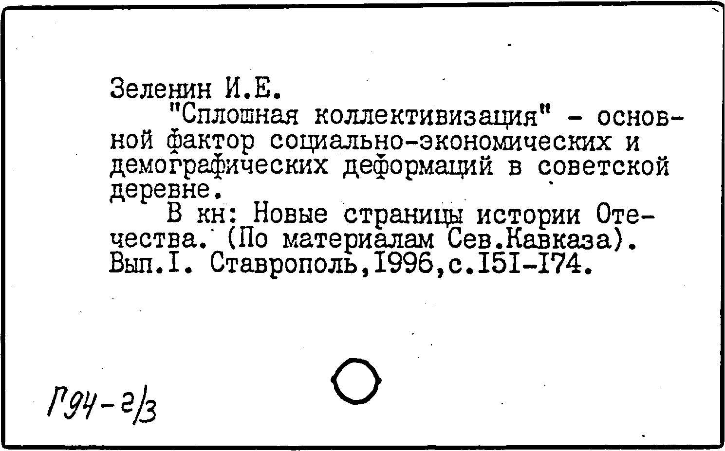 Книга (аналит. описание): "Сплошная коллективизация" - основной фактор социально-экономических и демографических деформаций в советской деревне