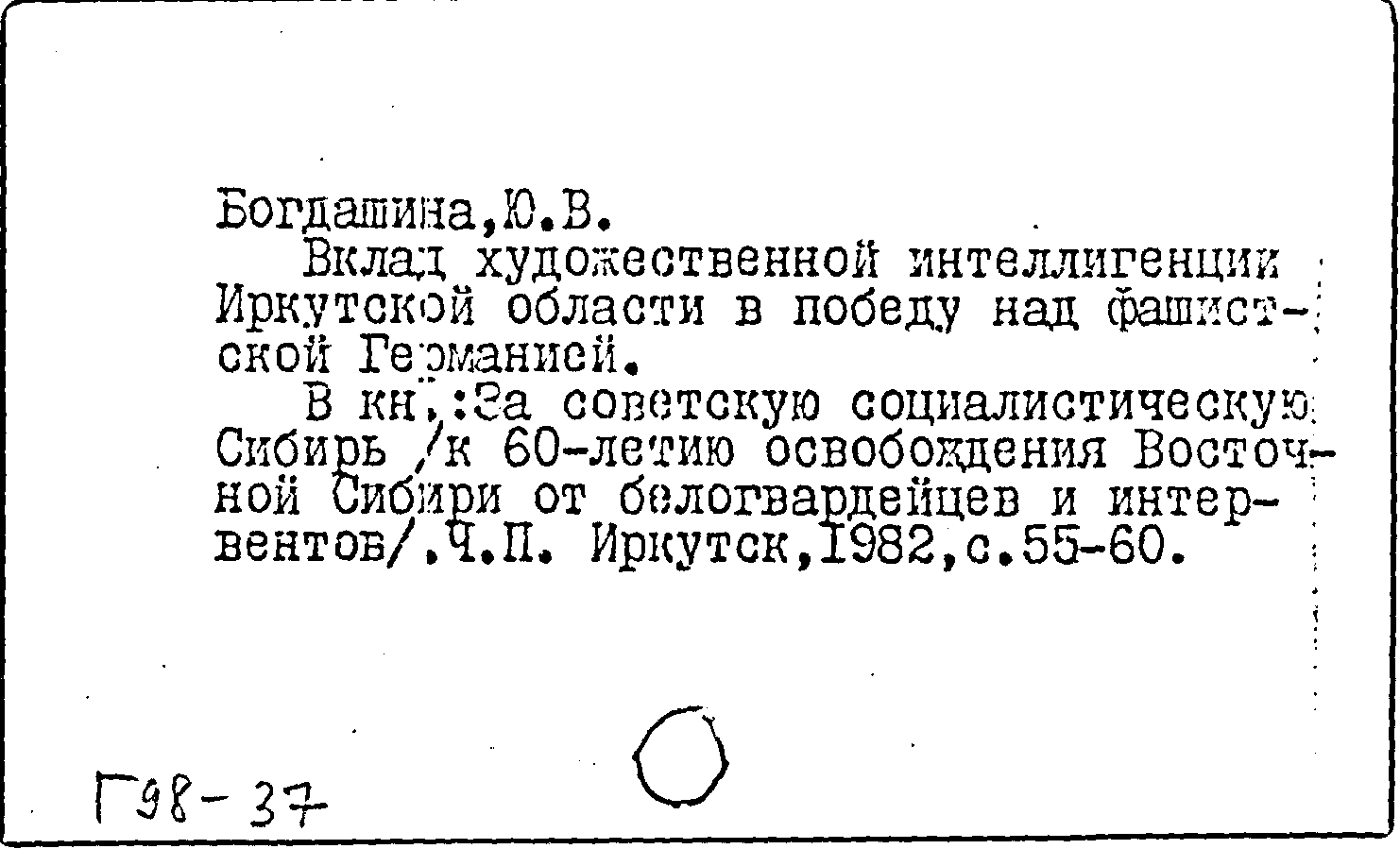 Книга (аналит. описание): Вклад художественной интеллигенции Иркутской области в победу над фашистской Германией