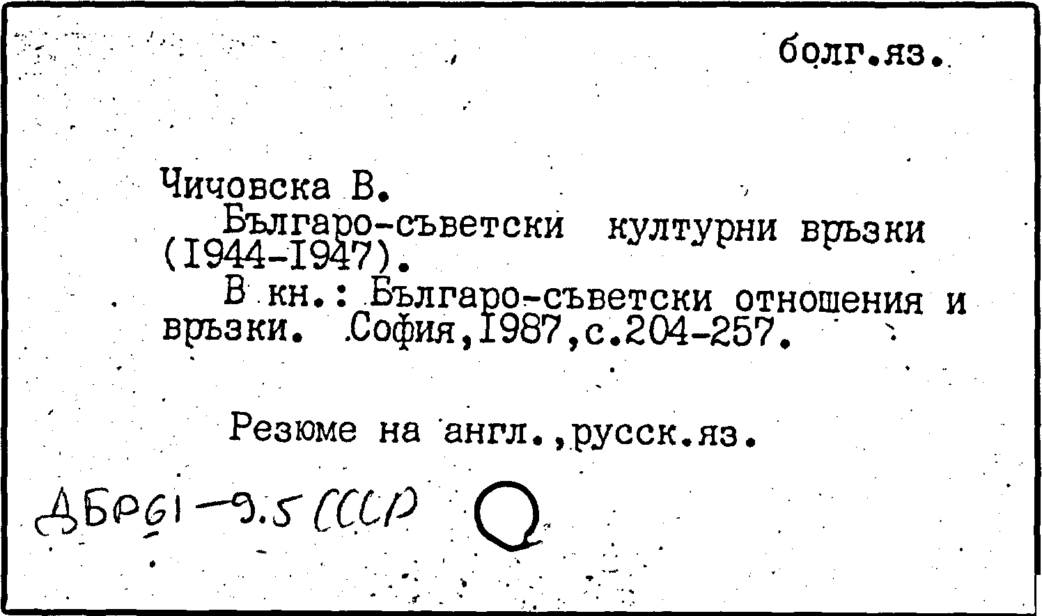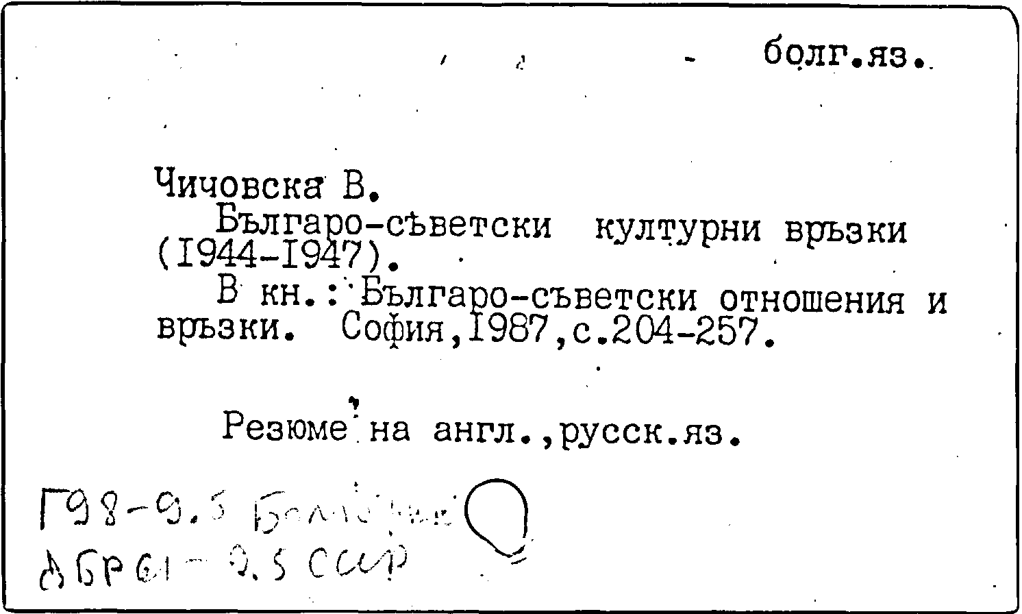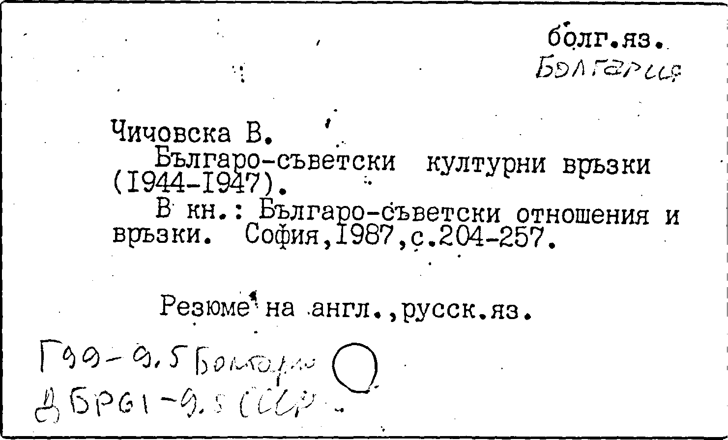 Книга (аналит. описание): Българо-съветски културни връзки (1944-1947)